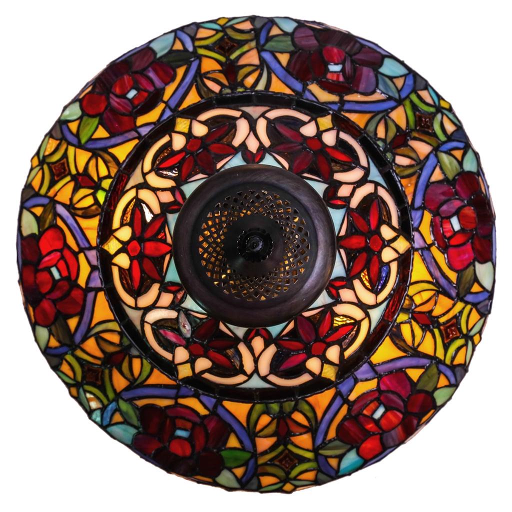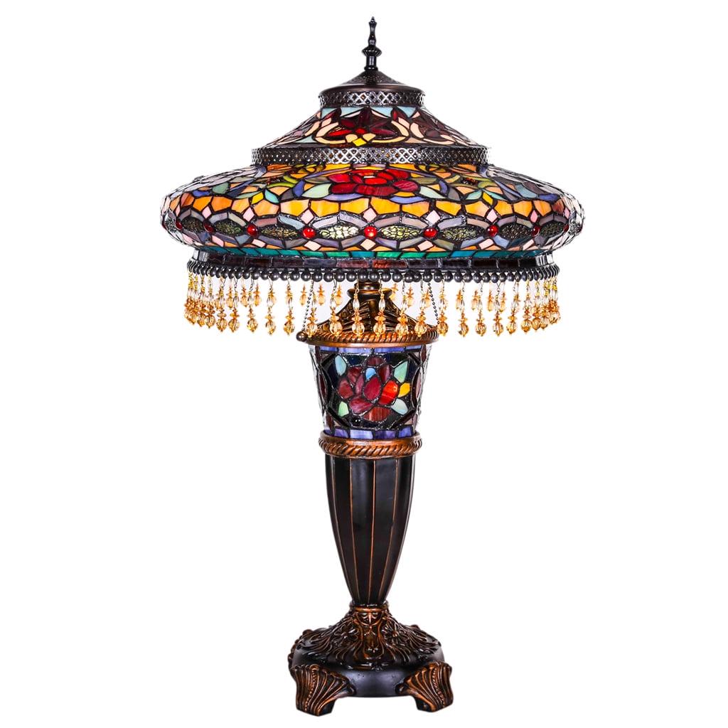 Grandiose glamour! This River of Goods Victorian Tiffany Style Stained Glass 27.5″ Double Lit Table Lamp is handcrafted with an incredible 1199 pieces of glass and 34 cabochons. Delicate beads adorned the edge of the shade giving it an extra flair. This lamp is sure to attract attention, and with the multitude of colors, it will accommodate many different decors. The base and the shade can be lit separately, which allows you to use the base as a night light. Functional and fabulous all in one!