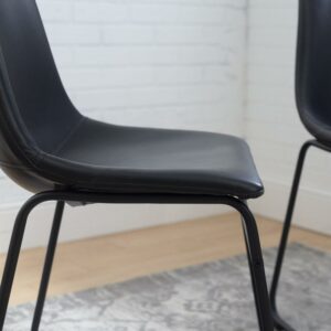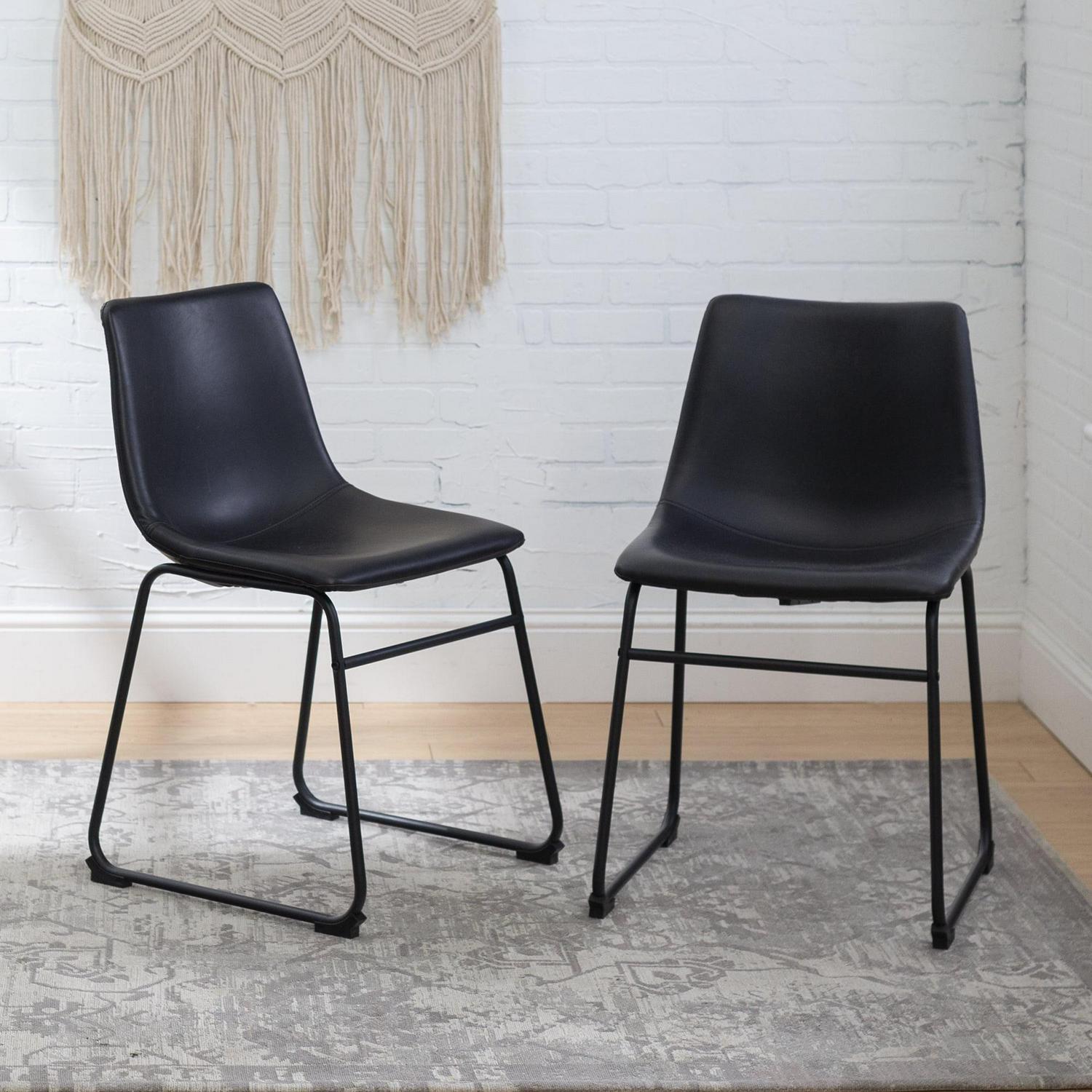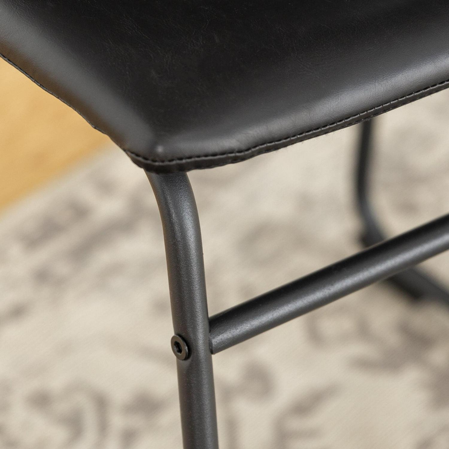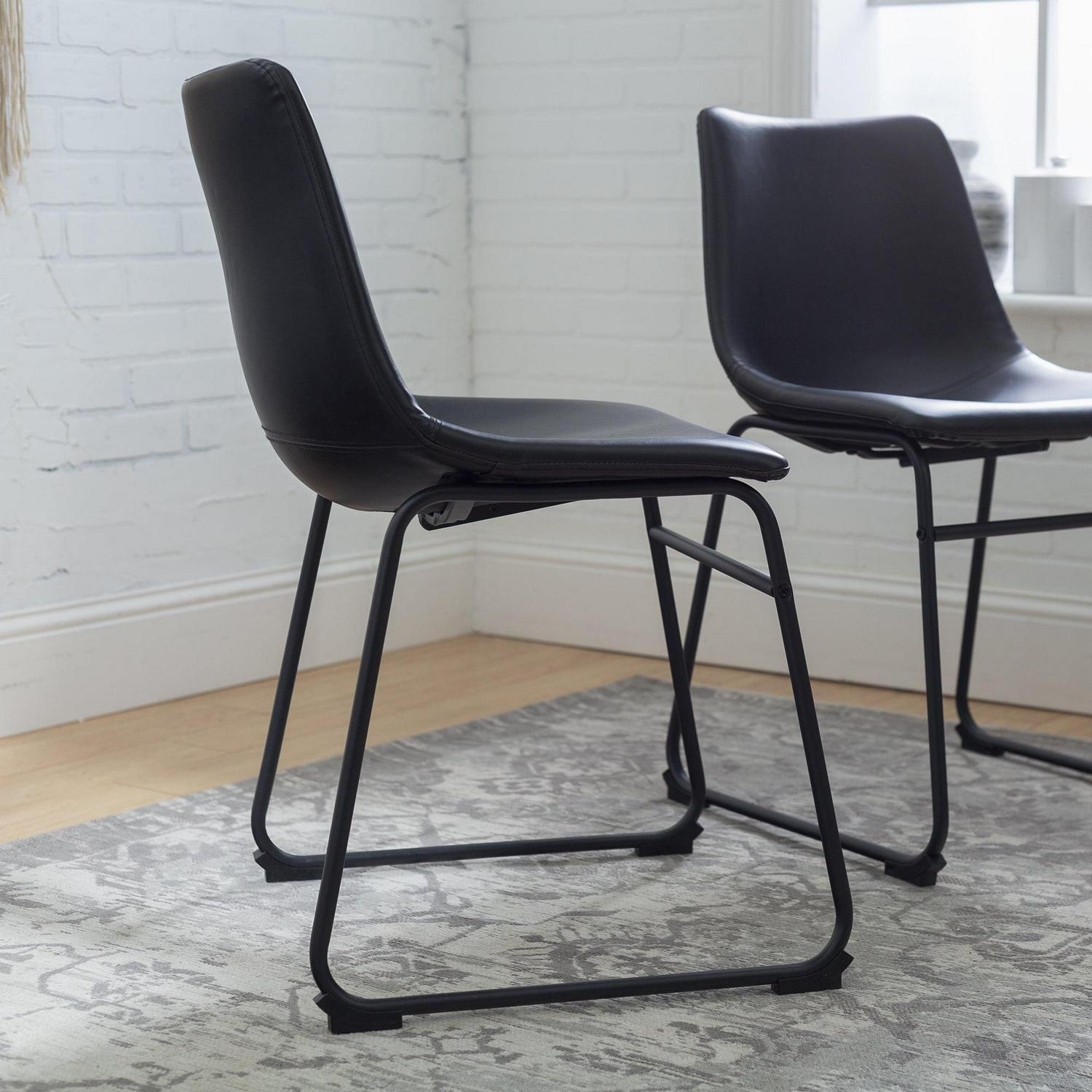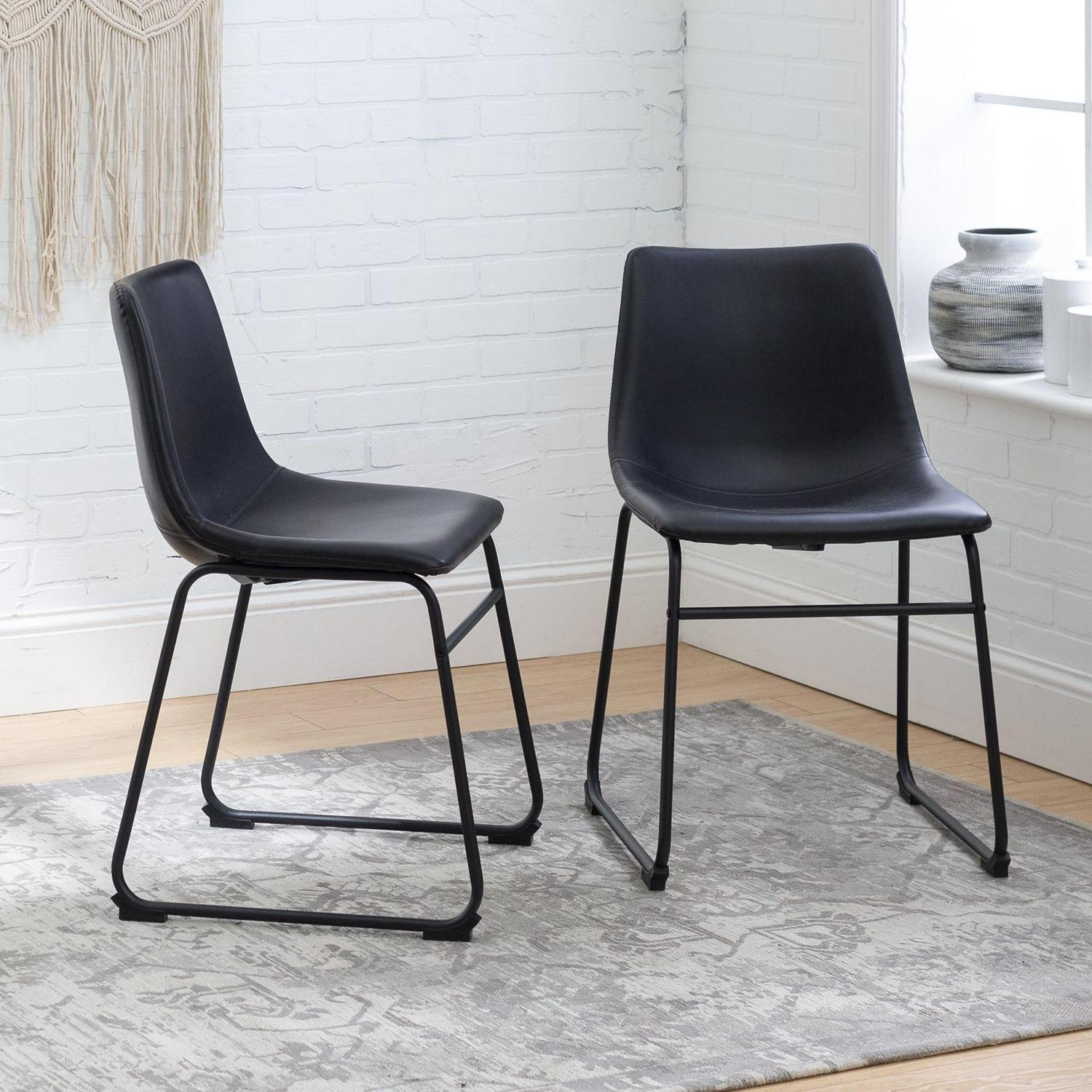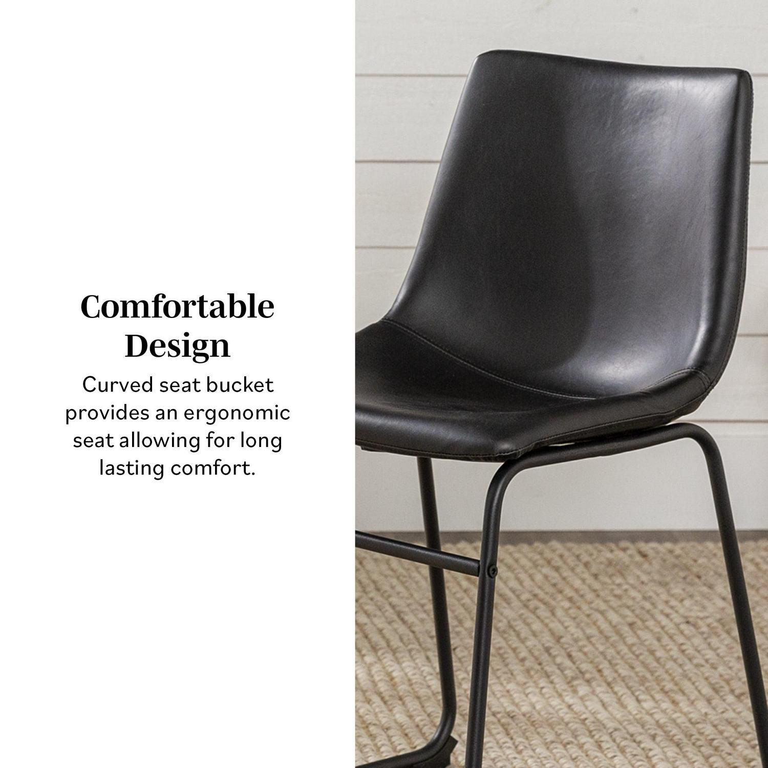 Show off your industrial taste with these Worthington faux leather black dining chairs by River Street Designs. The powder-coated metal frame and faux leather seat are bound to impress guests with your interior decorating skills without much hassle. These chairs come in sets of two so purchasing is as easy as entertaining will be once you have these scooted up to your table. They are easy to clean after the party is over. Just wipe them down with a damp cloth and you will be ready for the next celebration. Also available in a bar stool and counter stool.