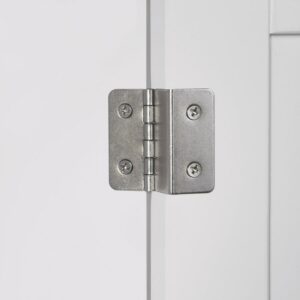 The upper half of the RiverRidge Home Ellsworth collection-tall cabinet includes three open shelves perfect for displaying decorative accents. The lower half includes one interior adjustable shelf hidden behind double doors to house a variety of bathroom essentials. Additional dimensions: Fixed upper shelves: 15.25″ L x 19.25″ W x 10.625″ D, interior middle/bottom shelf: 15.25″ L x 20.75″ W x 10.625″ D, and space between fixed shelves: 9.25″-9.75″.