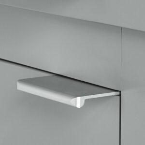 – Horizontal grooves on the cabinet door add a sleek, timeless look to any space