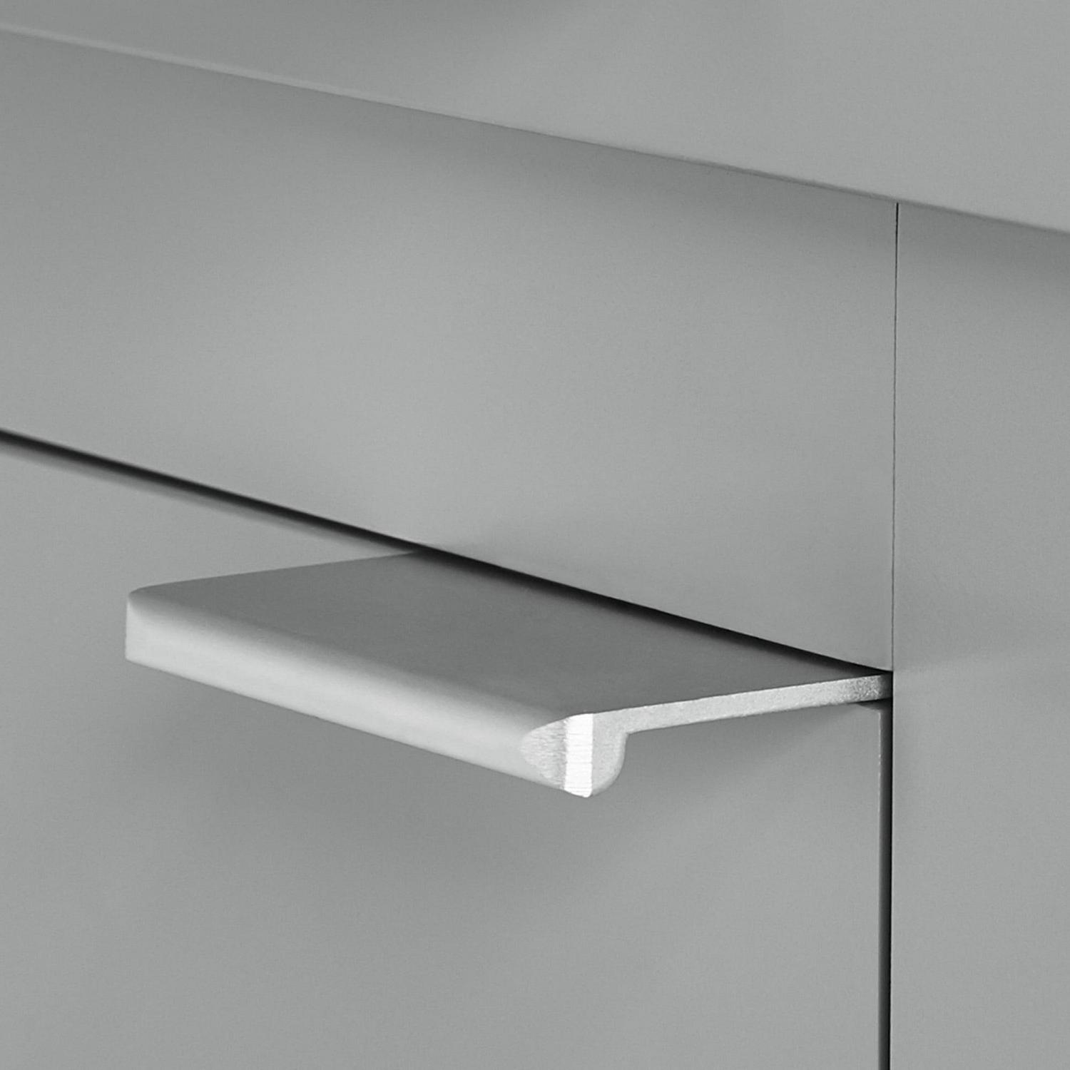 - Horizontal grooves on the cabinet door add a sleek, timeless look to any space