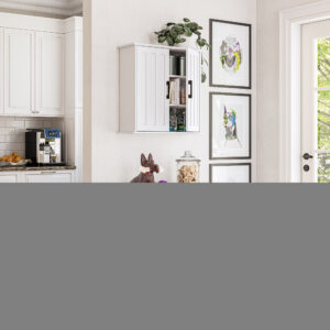 – Versatile design features white painted finish, vertical inset panels, and rectangular, matte black handles