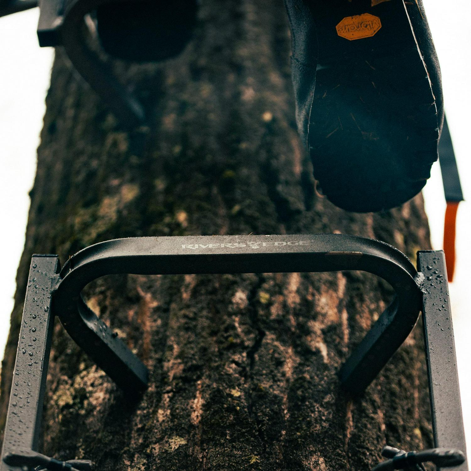 The Rivers Edge Big Foot Grip Rail offers security, versatility and portability when making the climb to your treestand in a convenient 4 pack. The Grip Rail is wide enough for two feet at every step and handrails on both sides for added security. In addition, the ladder steps are covered with Tractionite permanent non-slip coating for superior grip. The Grip Rail doesn t have any bolted parts to shift, squeak or come apart when using. Each section is independent to create more climbing options but nest together for compact and easy transport.