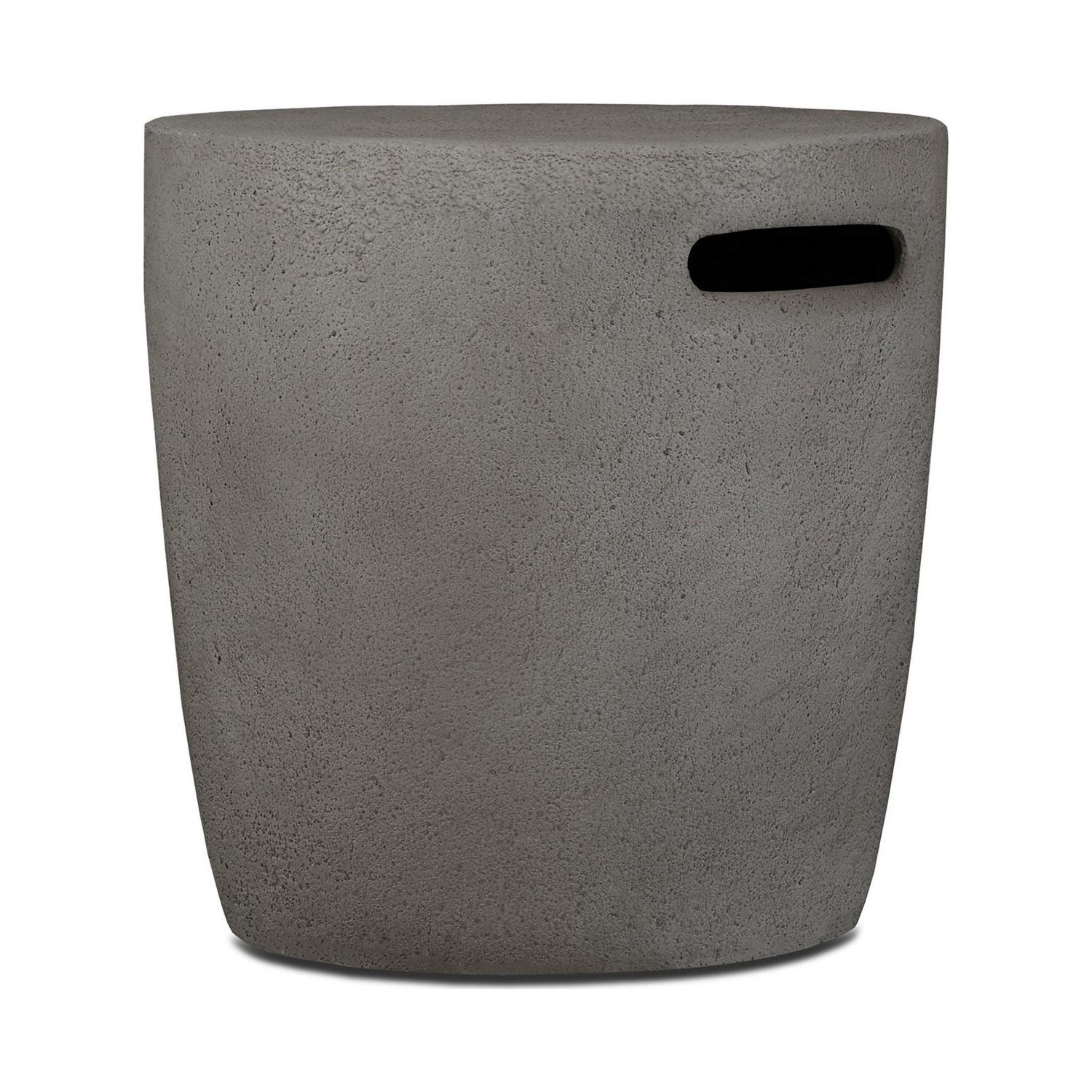 Styled to coordinate with the Riverside Gas Fire Bowl, this propane tank cover is constructed from durable fiber-cast concrete. The tank cover fits comfortably over a 20 lb. propane tank (not included) and includes tank seat with leveling feet for easy placement. Available in Glacier Gray finish.