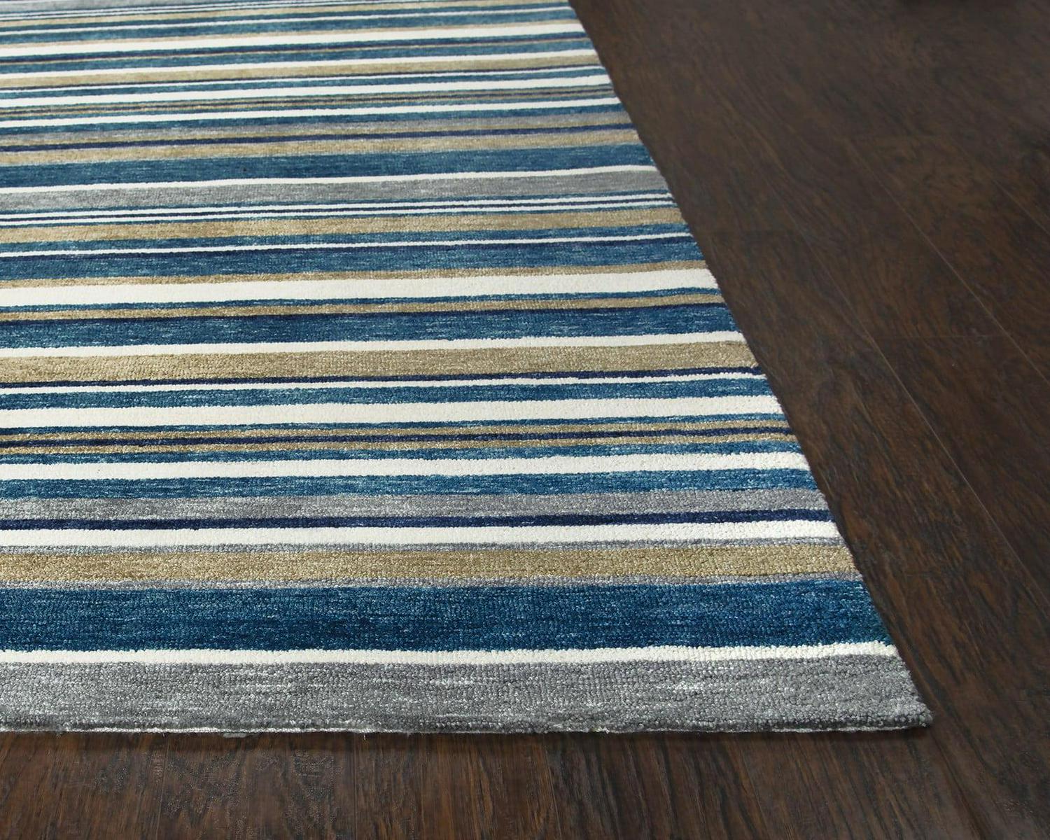 Rizzy Home Villa Collection Teal Stripes Hand-Tufted 5′ X 7’6″ Rug.