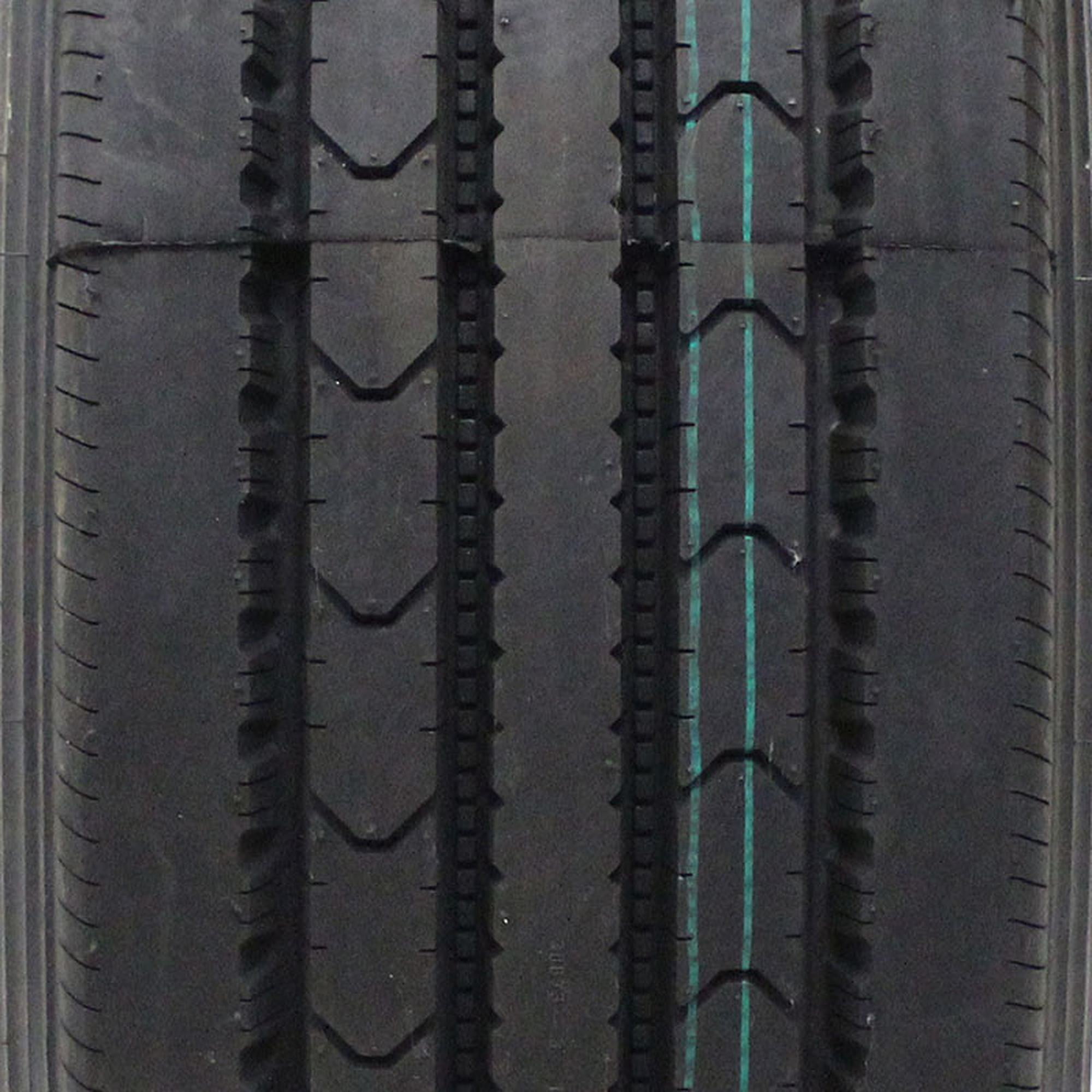 Wide tread and optimized footprint delivers long, even treadwear V-Shaped tread grooves work to reduce stone retention Stone ejectors in the tread grooves protect the casing from stone penetrations Designed for use on all positions of semi-trucks Circumferential grooves help avoid hydroplaning by forcing water out of the tread Built-in stone ejectors protect casing from damage by promoting self-cleaning Optimized footprint and wide tread base put more rubber on the road for better handling and stability Designed for use on local and regional pickup and delivery trucks Size: 235/75R17.5 Load Range: J Product May Vary From Picture Wheel/Rim Not Included