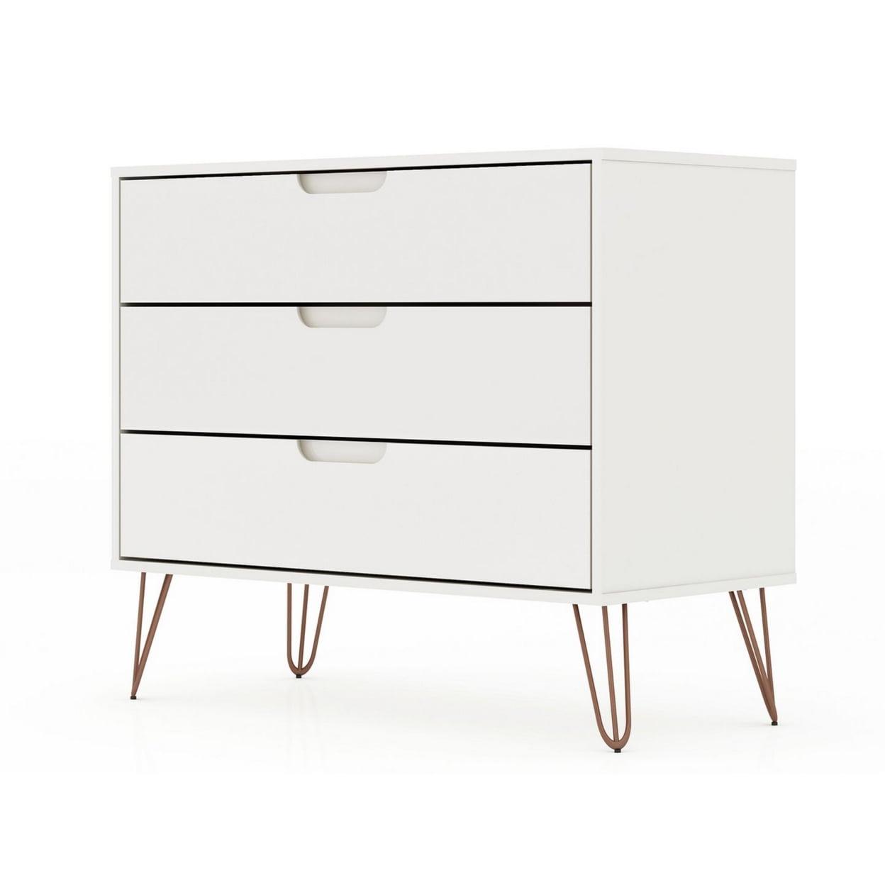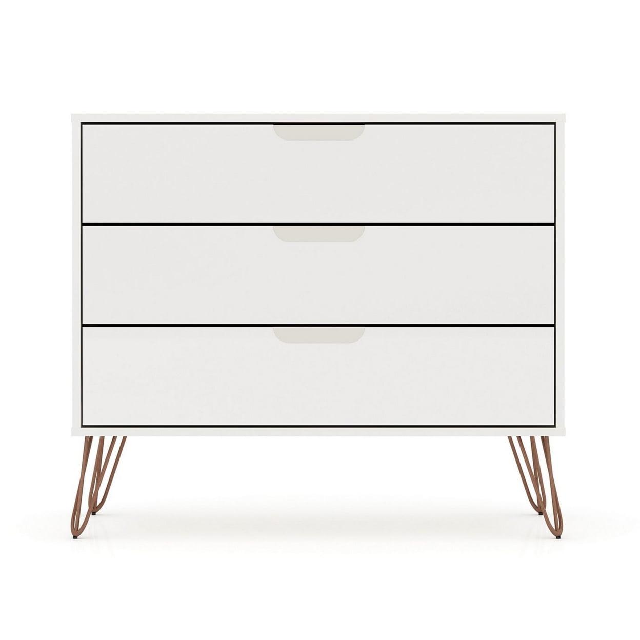 Rockefeller Mid-Century- Modern Dresser with 3- Drawers in White