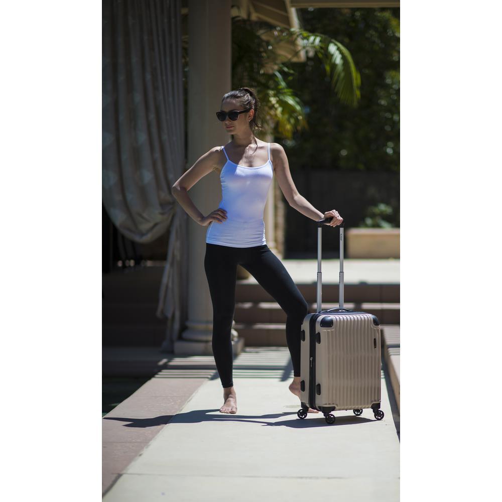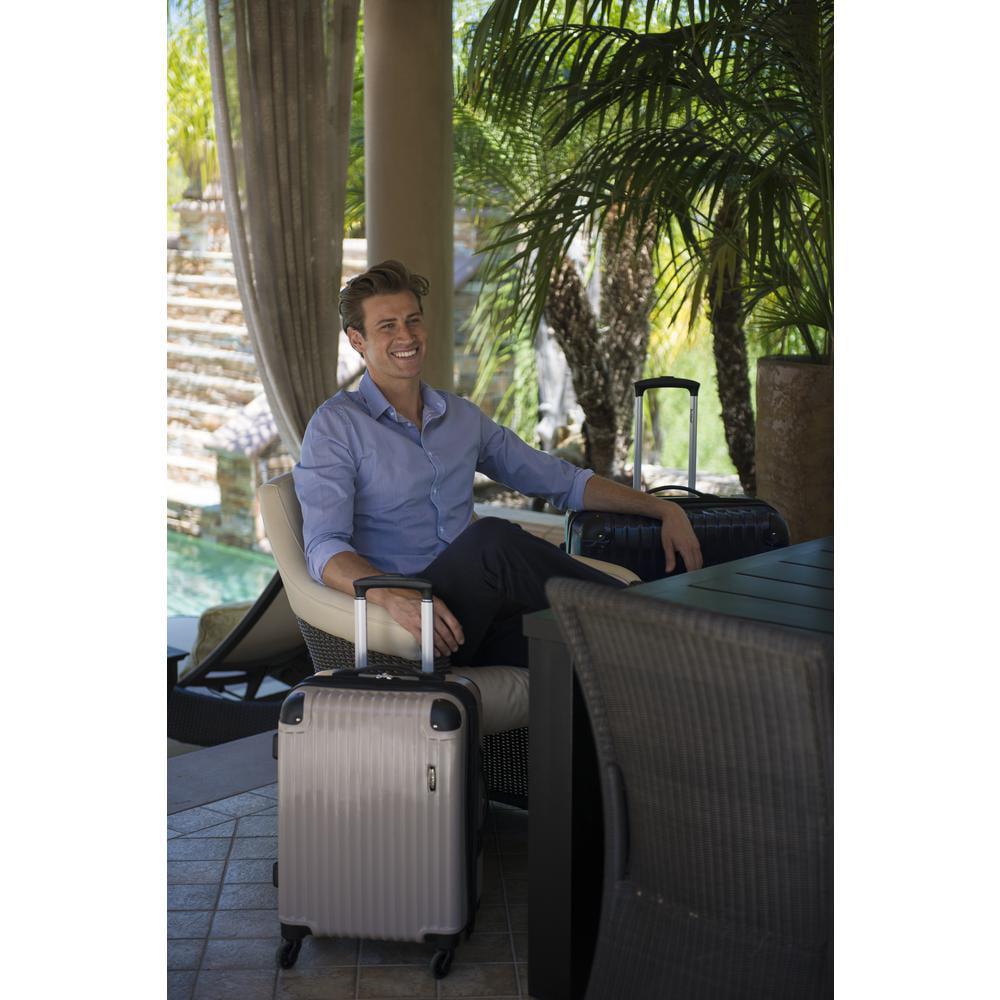 This 2 pc. Set is made of Polycarbonate. This material is extremely lightweight, durable, and protects the contents of your luggage. Eight multi directional spinner wheels rotate 360 degrees for easy maneuverability. This luggage allows you to pack more while avoiding the excess weight surcharges imposed by most airlines. 5 year warranty. 20″X13″x9″ weighs 6 lbs, 28″x17″x12″ weighs 10 lbs.