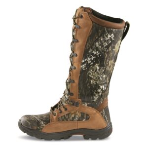 Rocky goes toe-to-toe with venomous snakes. And wins. – Snakes can strike in a flash, but you won’t need to worry. With durable puncture-proof nylon/full-grain leather uppers, these tall 16″ Boots protect your feet and lower calf from snake attacks. And you can trek through those grassy fields rain or shine with reliable Rocky waterproof construction to seal out rain and moisture while allowing sweat vapor to escape. A Prolight BioMech outsole provides excellent traction on uneven ground. Rocky 100% waterproof construction keeps water out while allowing vapor inside to escape; Snake-proof protection from rattlesnakes, copperheads and coral snakes; Durable puncture-proof nylon and full-grain leather uppers; BioMech PU/rubber outsole delivers plenty of ‘bite’ for traction on uneven ground; Rear pull-on loop makes them easier to put on; Each approx. 16″h., 32 oz.; Waterproof: Yes; Upper: Puncture-proof nylon and full-grain leather; Outsole: Prolight PU/rubber; Special features: Quick lacing system; Color: Mossy Oak Break-Up/Brown; Height (approx.): 16″; Weight per boot (approx.): 32 oz.; Mfg. Number: FQ0001570.