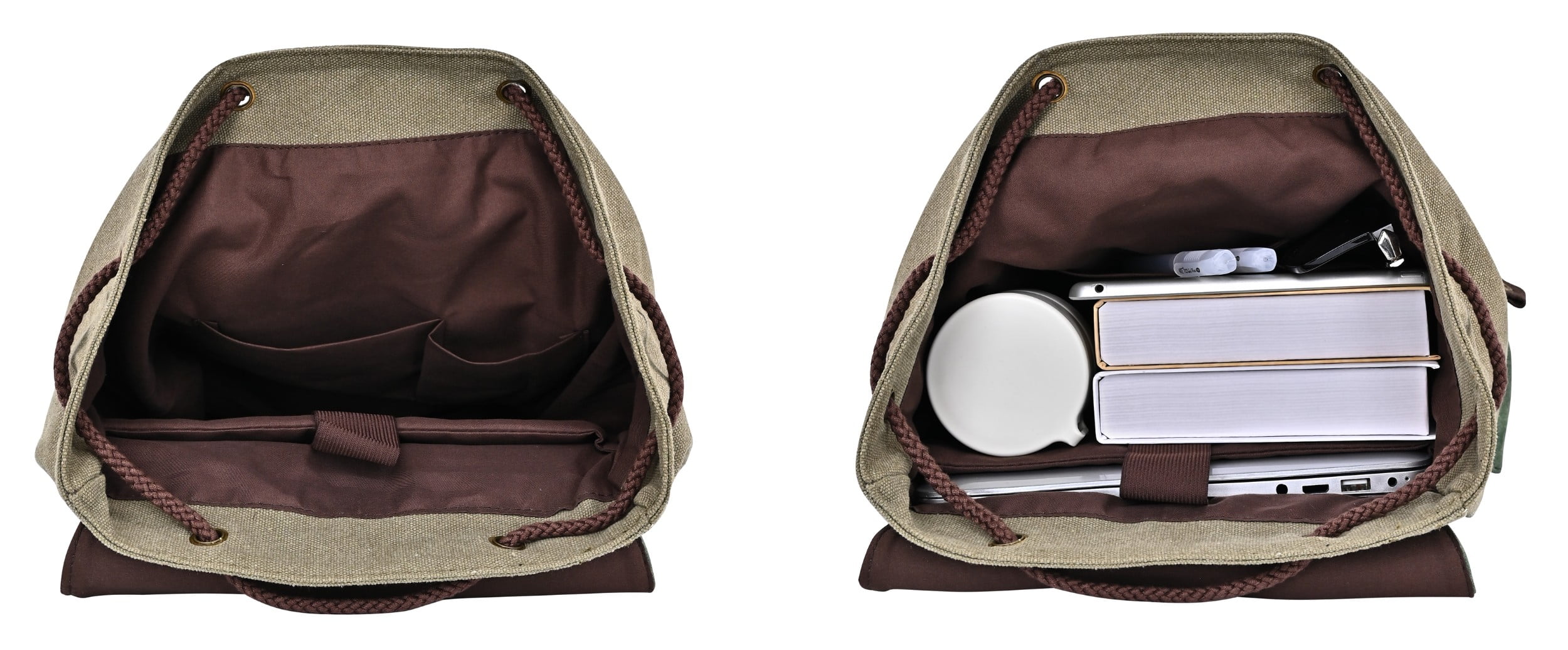 Material: High quality durable canvas + Faux leather. Size: 12.2 L * 6.4 H * 16.1 W inch / 31 *16.5 * 41 cm. Design: Drawsting closure, snap button closure flap over design, with the printing of — logo, padded and adjustable shoulder strap. Pockets: 1 zippered pocket, 1 hook and loop fastener pocket and 2 sew-on snap buttons side pockets. 1 spacious main compartment contains 2 small open pockets and padded laptop compartment with room to accommodate a 14 inch laptop. It is a great gift for anime fans.