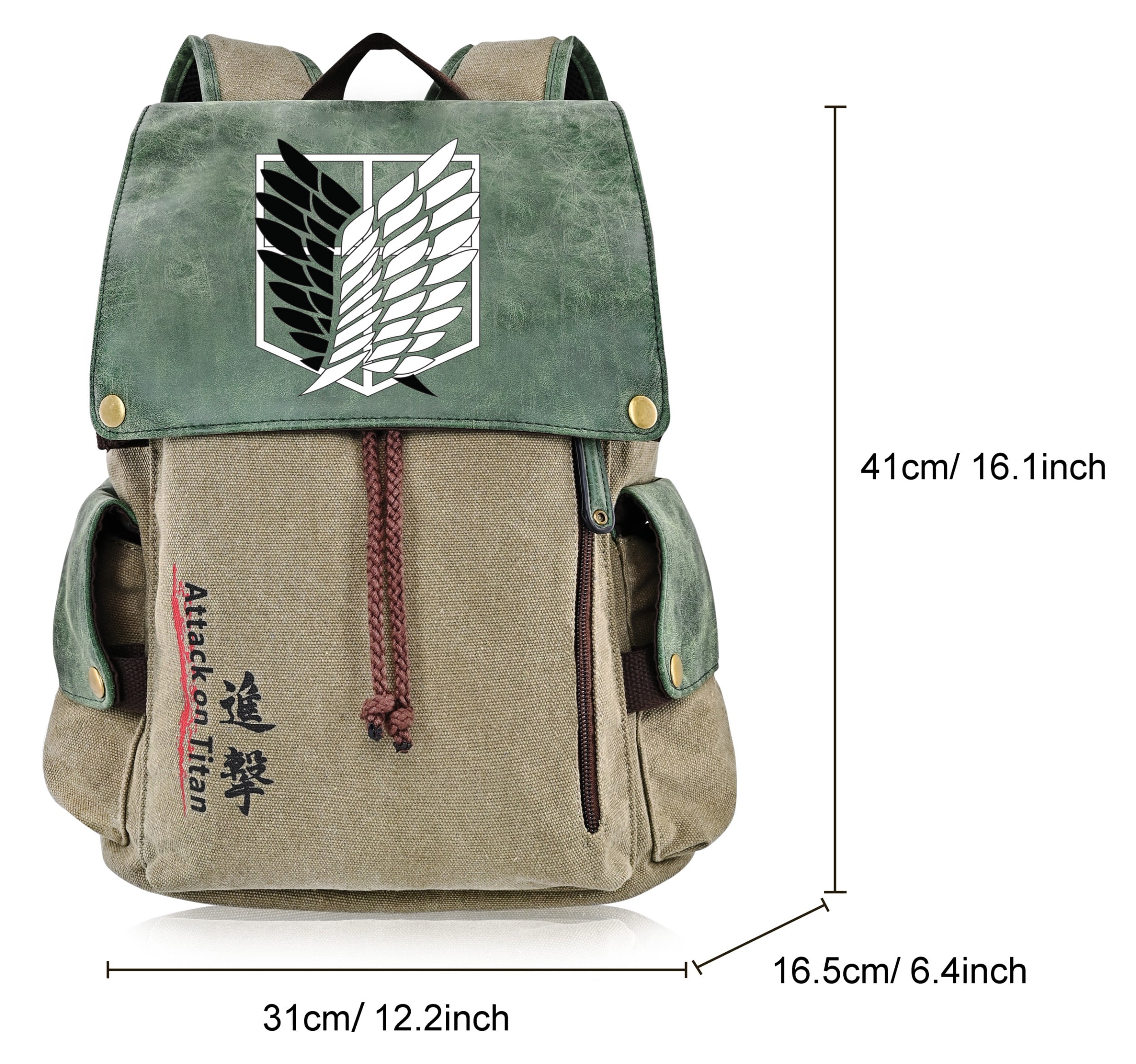 Roffatide Anime Attack on Titan Backpack Canvas Schoolbag Survey Corps Printed Flap Backpack Laptop Back Pack
