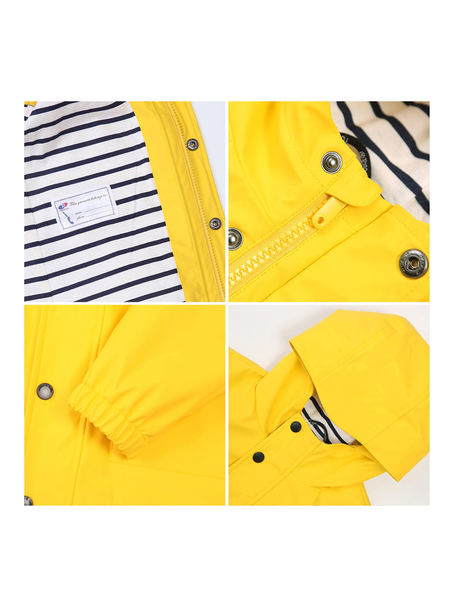 Shell: 100% Polyester [with PU coating]; Body Lining: 65% Polyester, 35% Cotton; Sleeve Lining: 100% Polyester Imported. Regular Fit Waterproof softshell textile that is durable in cold and wet conditions Rubberized fabric layer that allows performance in harsh weather Lightweight and breathable to allow comfort and full mobility when on hiking trails Rainproof hood to repel moisture and ensure optimal ventilation This slicker rain jacket is designed to help make it windproof and versatile Front handwarmer snap pockets to ensure extra warmth and protection Name card inside to prevent it from being lost at school Reflective logo printed on the front provides better visibility at night for your kid’s safety Machine Wash [cold & gentle cycle – garment inside out – hang dry & hand wash preferred] Please note: Do not iron, bleach, or tumble dry – may cause damage to wax coating. Standard U.S. Sizing [PLEASE REFER TO THE SIZE CHART IN THE IMAGE GALLERY] Model is 47” and 42 lbs wearing Size XS
