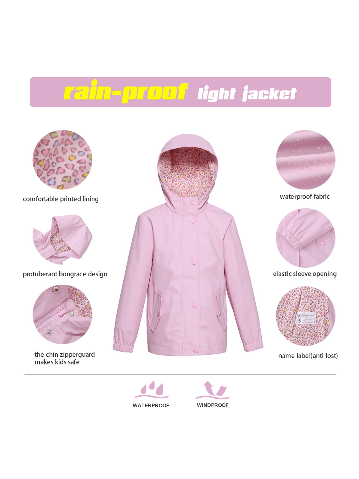 Shell: 100% Polyester [with PU coating]; Body Lining: 65% Polyester, 35% Cotton; Sleeve Lining: 100% Polyester Imported. Regular Fit Waterproof softshell textile that is durable in cold and wet conditions Rubberized fabric layer that allows performance in harsh weather Lightweight and breathable to allow comfort and full mobility when on hiking trails Rainproof hood to repel moisture and ensure optimal ventilation This slicker rain jacket is designed to help make it windproof and versatile Front handwarmer snap pockets to ensure extra warmth and protection Name card inside to prevent it from being lost at school Button-snap zipper closure Machine Wash [cold & gentle cycle – garment inside out – hang dry & hand wash preferred] Please note: Do not iron, bleach, or tumble dry – may cause damage to wax coating. Standard U.S. Sizing [PLEASE REFER TO THE SIZE CHART IN THE IMAGE GALLERY] Model is 41” and 42 lbs wearing Size XS