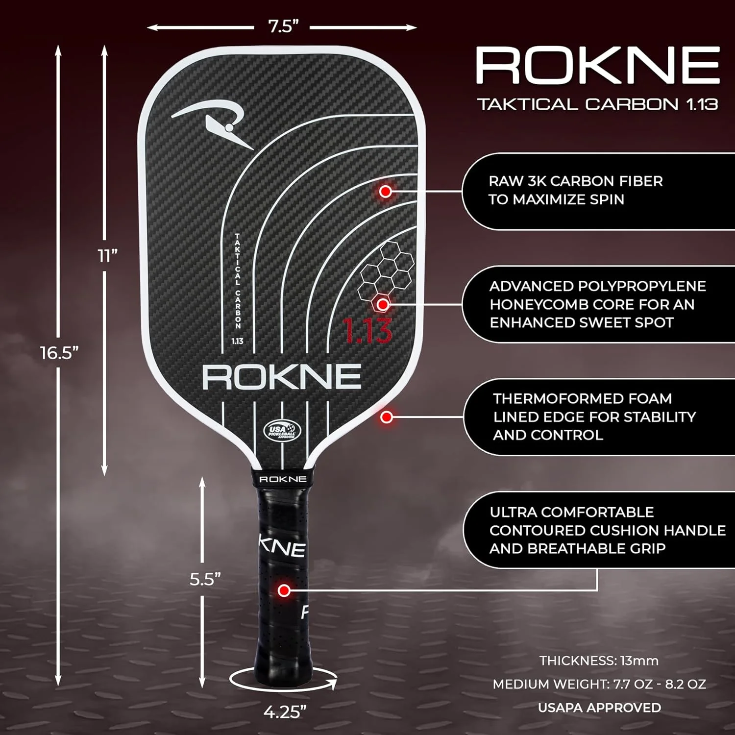 Rokne Taktical 3K Raw Carbon Fiber Pickleball Paddle Thermoformed Foam Lined Racket Edge, 13mm Pro Grit Texture