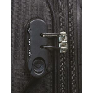 – Expands two inches for more packing capacity, 3-digit combination lock (Non-TSA), Fully lined interior features a zipper divider, Large mesh zipper pocket, and compression straps