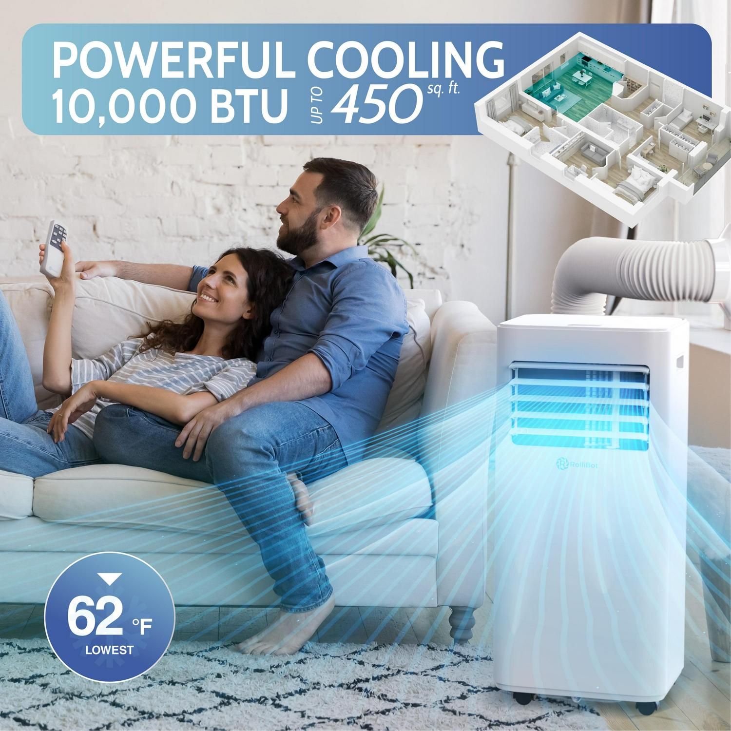 Rollicool 10,000 BTU Portable Air Conditioner Alexa and Wi-Fi Enabled Quiet Portable AC and Dehumidifier Covers Rooms up to 450 Sq ft