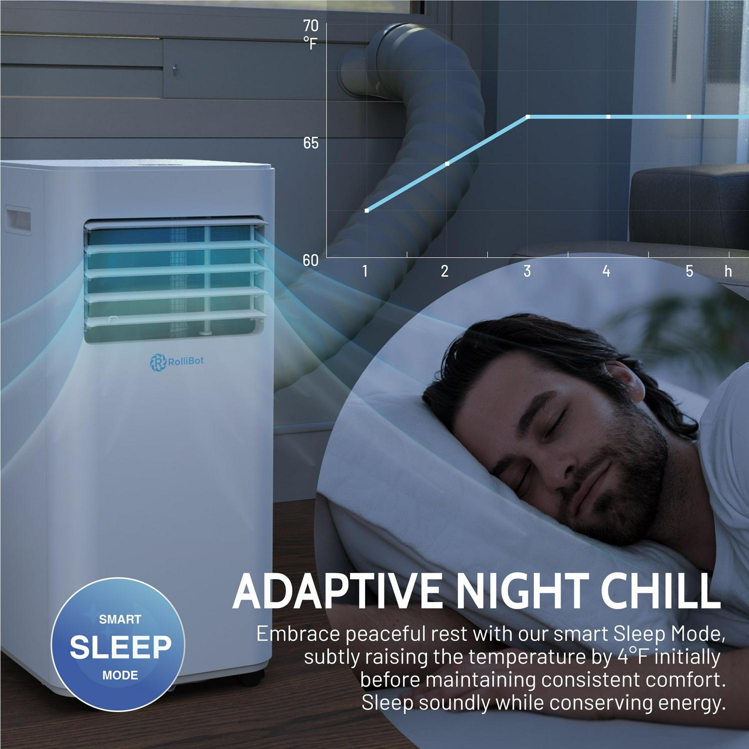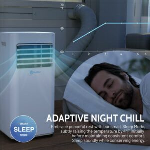 Save big on your power bill this summer without sacrificing comfort. Spot cool the room you’re in, not the entire house. It doesn’t make sense to crank the central AC thermostat if you spend hours in your home office or want a lower temperature in the baby’s room. Our portable unit uses high-efficiency R32 refrigerant and can save you up to 5x on your electric bill. Sleep mode focuses on energy-efficient cooling and helps ease you into a peaceful sleep. It gradually reduces fan speed until it switches off, keeping you cool without a big energy bill.