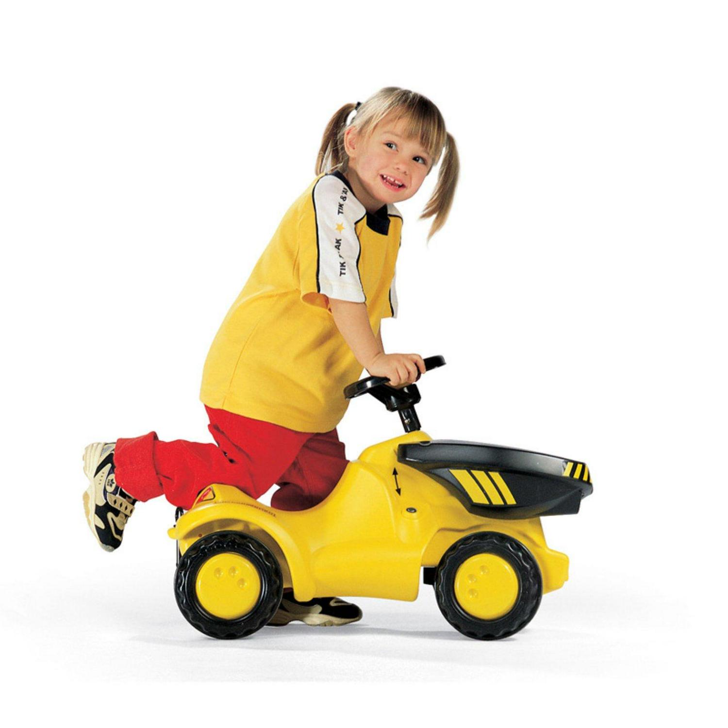 The CAT Baby Dumper is made of high-impact, blow-molded resin. Children can sit and scoot, or kneel and scoot for hours of fun. It also features real working front tipping bucket and a squeaker horn.