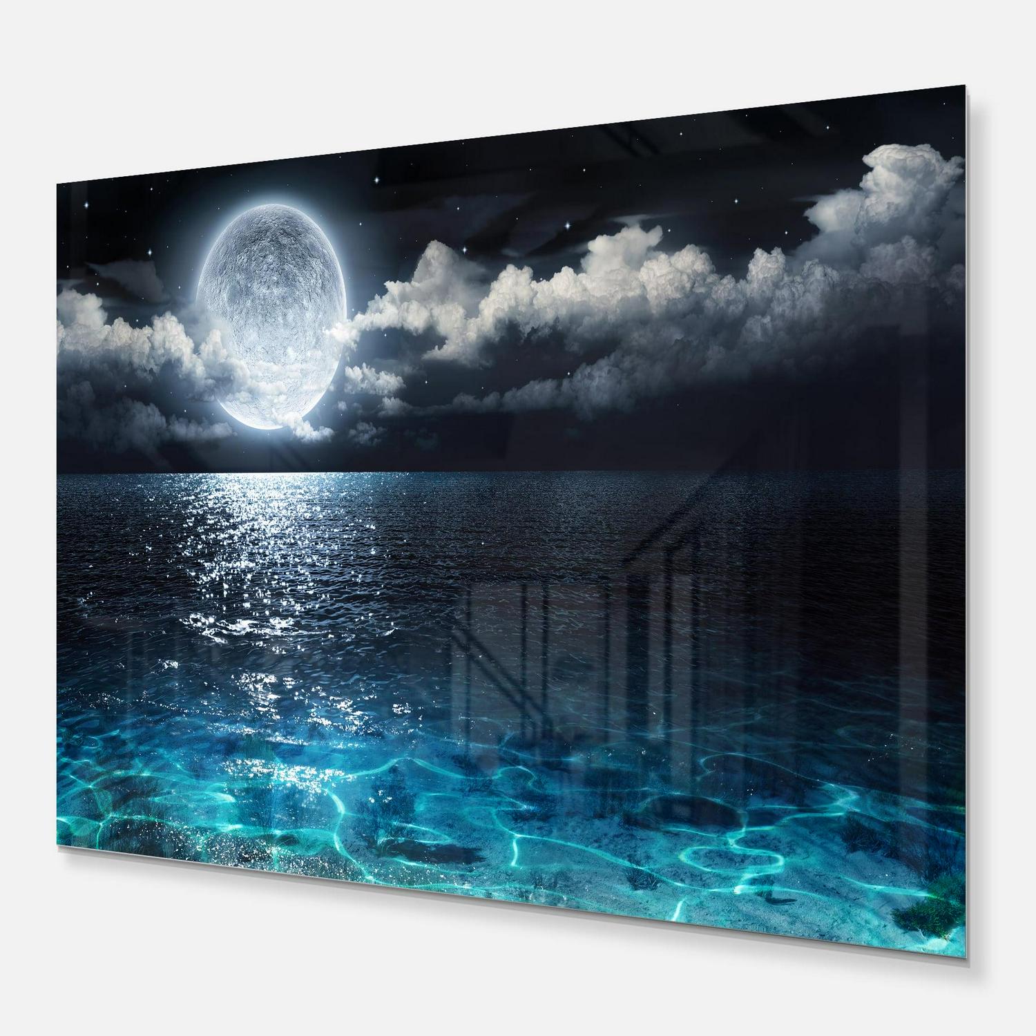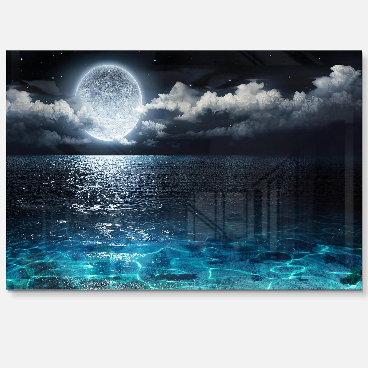Romantic Full Moon Over Sea 40 in x 30 in Painting Art Prints, by Designart