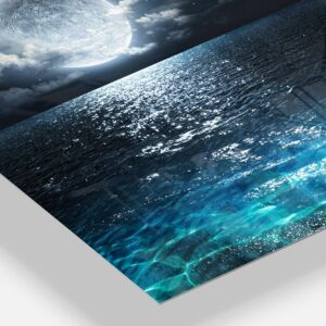 Bring Contemporary Abstraction to your home with this metal wall art. Available in several size, this Romantic Full Moon Over Sea Metal Artwork makes it the focal point of any room or office. White Gloss Coating ensures colors are extra vibrant with light reflection. 1-inch mounting frame gives the illusion of artwork floating on the wall. Mounting brackets and instructions are included.