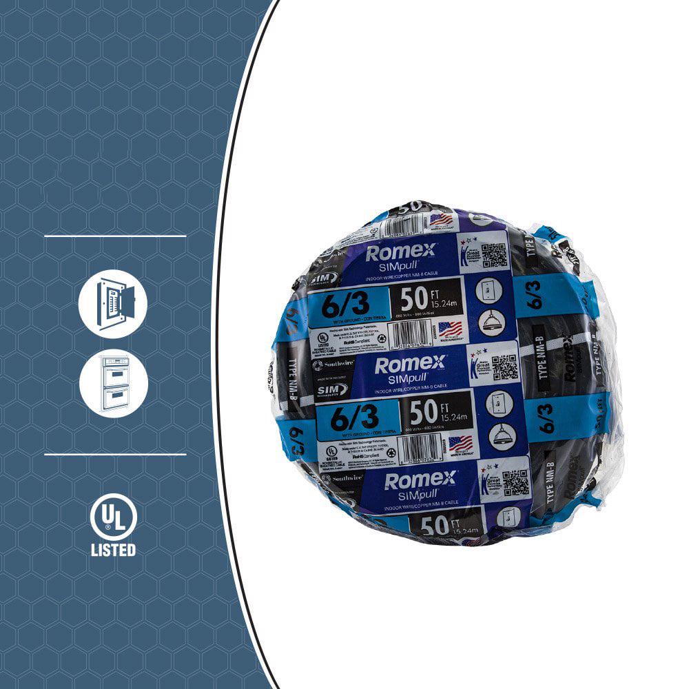 Romex 63950032 6/3 50′ Black Stranded CU SIMpull NM-B Wire:
