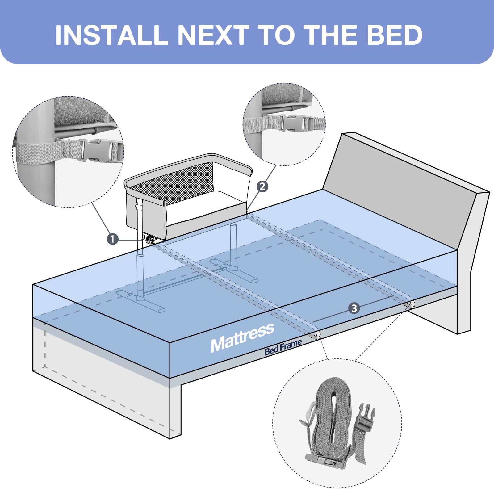 【Two-Sided Breathable Mesh Design】The open mesh two-sided design provides babies with their private sleeping area and provides greater breathability and comfort. Expanded the field of vision so that mom and dad can take care of the baby, making you safer to use. 【High-quality Mattress Material】Our mattress uses memory foam + 3D upright cotton, which can effectively protect the development of the baby’s spine and is more comfortable than most mattresses. The outer layer of the mattress is designed to be waterproof, which can prevent liquids from penetrating under the mattress, making cleaning easier. 【Thoughtful Design】The outer frame of the crib uses a frosted outer film and a sponge liner material, so you don’t have to worry about cutting the new parents or the baby. 【Easy and Tool-free Assembly】Disassemble and fold in under a few minutes, you only need to push leg frames and pull up the handrails.