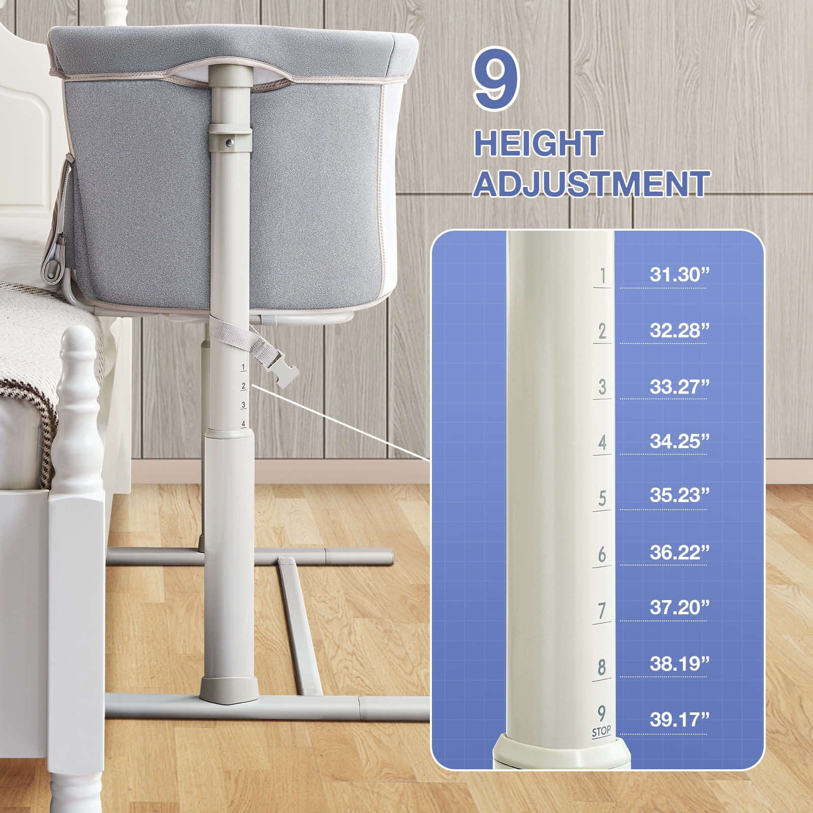 RONBEI Baby Bassinet, Baby Bassinet Bedside Sleeper, Bedside Crib for Baby Infants Unisex Why Choose RONBEI Bassinet? Fall asleep knowing your little one is close to our bassinet bedside sleeper. This RONBEI bassinet is a bset choice. RONBEI is a 14-year professional manufacturing enterprise specializing in baby crib design, research, and development. RONBEI bassinet was manufactured with soft skin-friendly fabric which exceed safety standards while promoting bedside parent-infant bonding, holds your little one safely within reach, right at your bedside. RONBEI bedside bassinet can be adjustable to 9 height adjustments level enabling you to lower or raise the height according to your bed height. RONBEI bedside bassinet for baby is easy to assemble, comfy, and very safe! You are able to take down and reassemble easily without having any other tool. Features: 9 Height Adjustment Lightweight and Portable Bassinet Double-sided Breathable Mesh Specification: Color: Deep/Light Gray Brand: RONBEI Gender: Unisex Product Dimension: 36.2″L x 27″W x 39″H Fabric material: Peach skin, cationic, polyester Main material: Steel pipe + plastic Product Weight: About 22 pounds Suitable Age: 0-10 Months Maximum Weight Recommendation: 19.8 Pounds