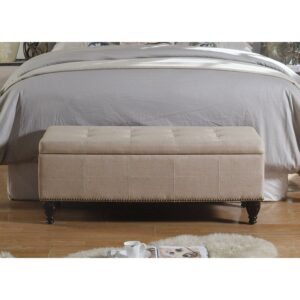 A little extra bedroom storage can go a long way, especially when it’s as all-out elegant as the Rosevera Elmo Upholstered Ottoman Storage Bedroom Bench. Perfect as a footrest or foot-of-bed bench, this ottoman features linen upholstery in a choice of color, complete with nailhead trim along the bottom edge. Open the hinged lid, complete with button tuft accents, to reveal a smart storage area for blankets, clothing, and more.