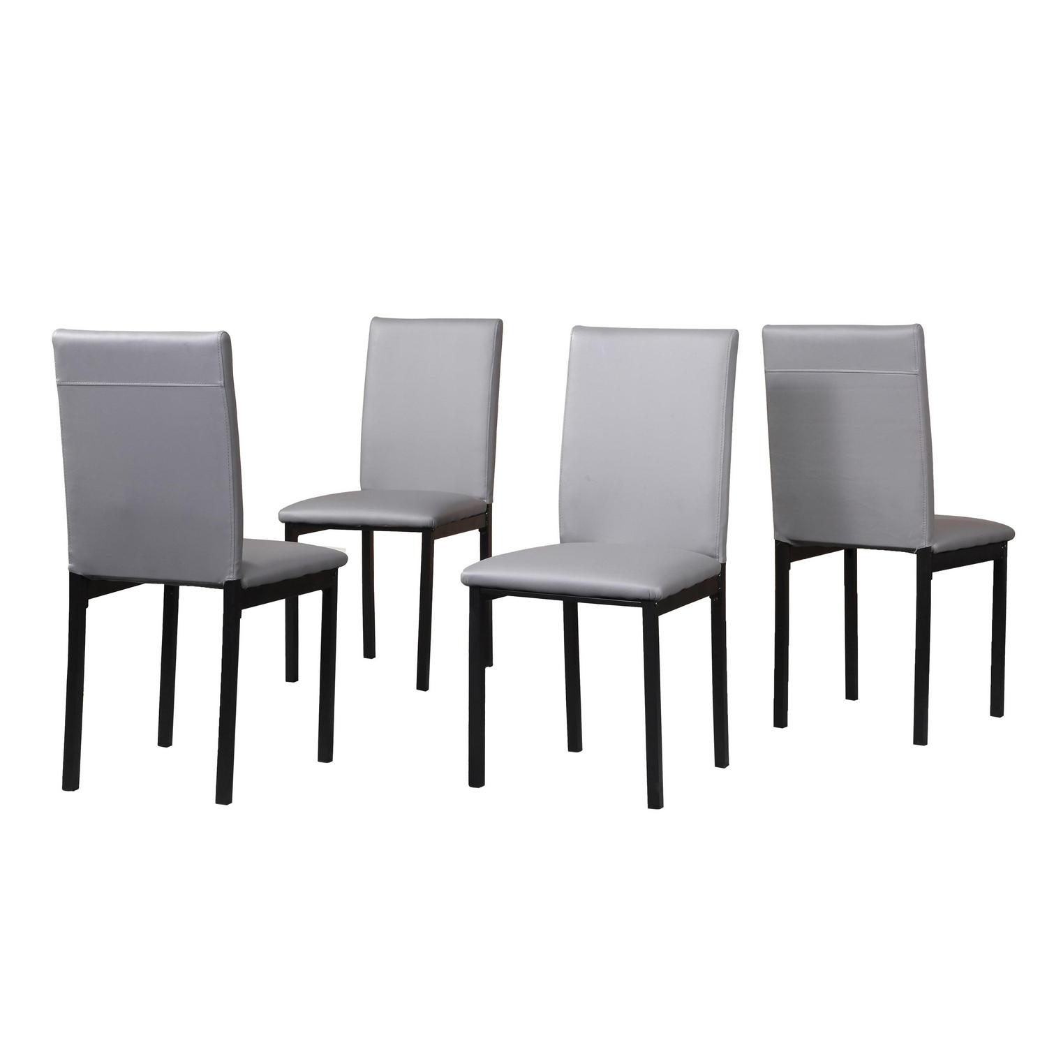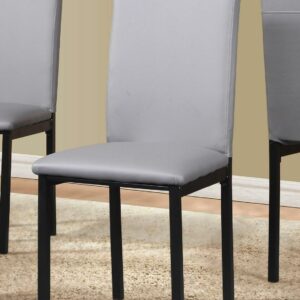 - The chairs are upholstered with gray faux leather