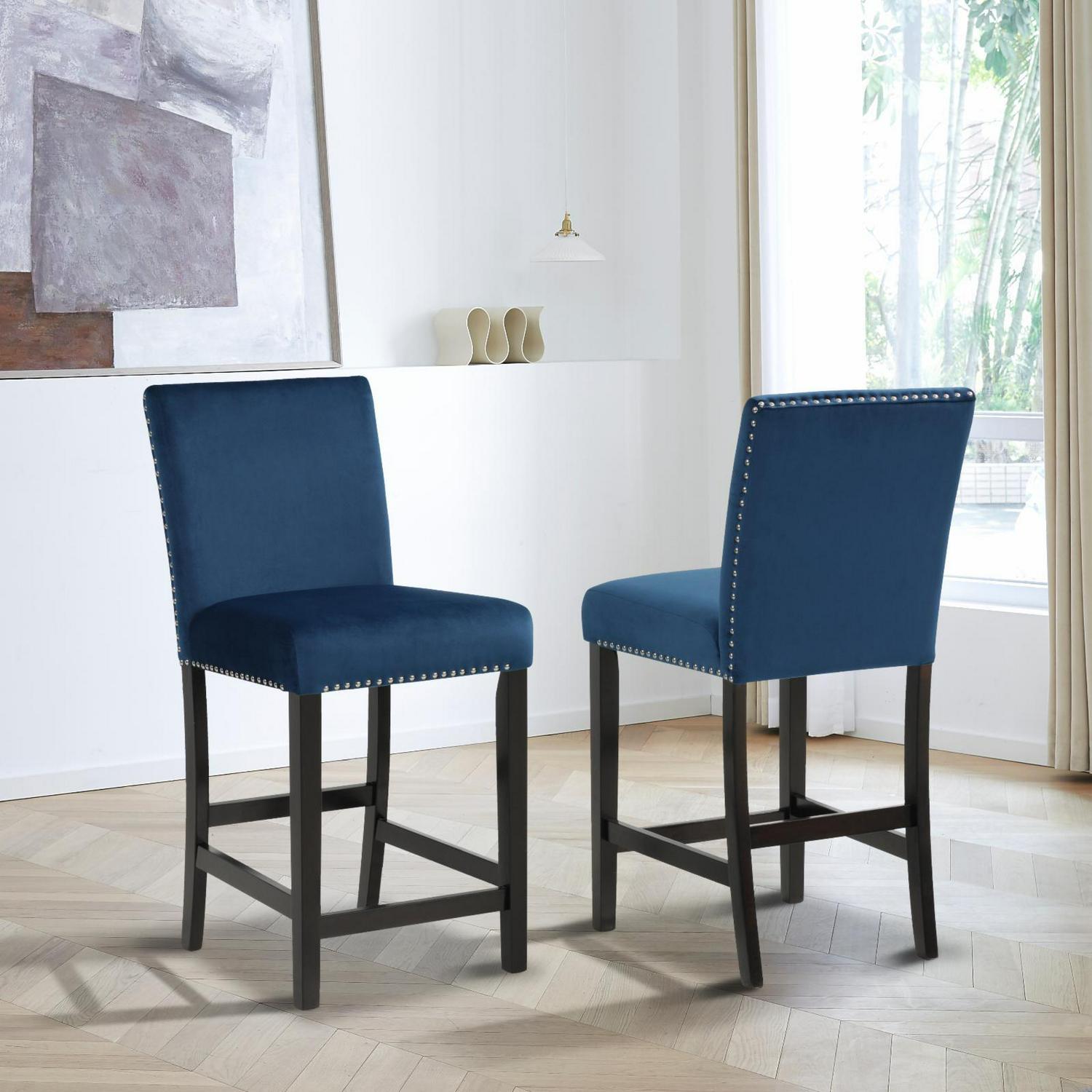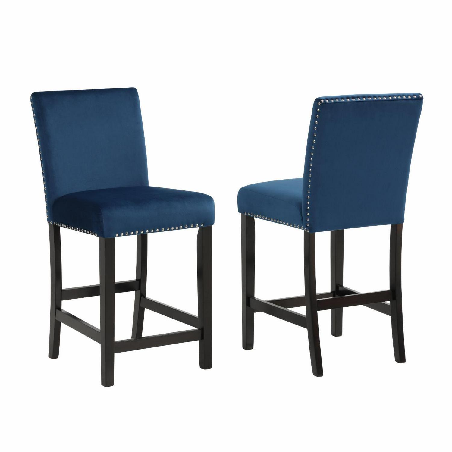 With its parson styling and chic silhouette, the Roundhill Furniture Cobre Contemporary Velvet 26 in. Counter Stool – Set of 2 makes a tailored addition to your dining room. Velvet upholstery in your choice of available colors is accented by studded chrome nailheads. Thickly padded cushions provide a comfortable place to sit while solid wood legs finished in a handsome espresso hue complete the look.