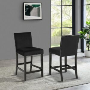Roundhill Furniture Contemporary Velvet 24.5 in. Counter Stool – Set of 2 – Black