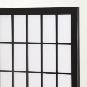 Roundhill Furniture Hoceima Oriental Shoji 4 Panel Room Divider, 71 Tall, Black