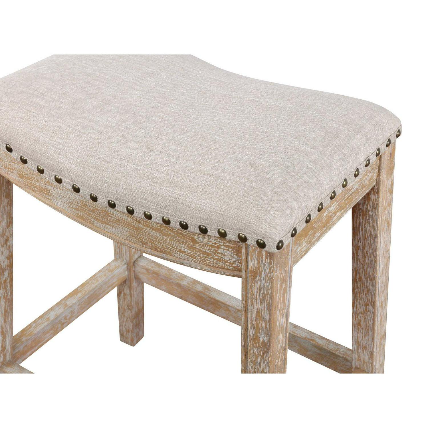 Roundhill Furniture Maroni Upholstered Saddle Bar Stool with Nailhead Trim – Set of 2