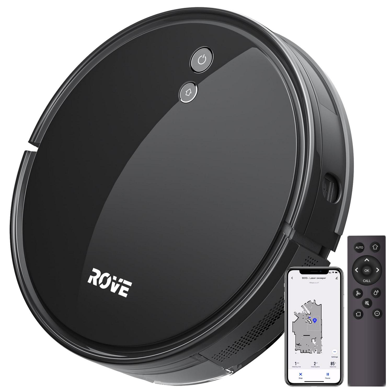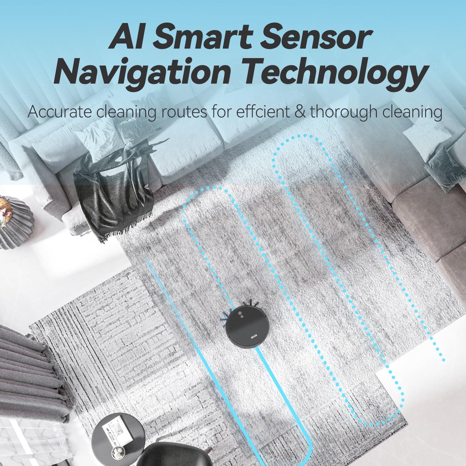 The ROVE Robot Vacuum utilizes AI smart sensors to provide sophisticated navigation that cleans thoroughly every time. With powerful suction and floor recognition, the smart sensors on the robot vacuum recognize the floor type and thickness of the carpet to adjust the power for effective deep cleaning. The ROVE robot vacuum can be controlled at your fingertips with the included remote control or your phone, compatible with iOS and Android devices. Not only does the ROVE robot vacuum provide auto recharging, it also allows you to schedule cleaning, spot clean, create no-go zones, has easy empty dust bins, and provides anti-fall and virtual wall technology.