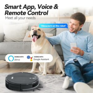 – SMART VOICE & APP CONTROL: Our automatic vacuum cleaner robot is compatible with Alexa and Google Home Assistant that voice commands to start and stop cleaning more conveniently. (Works with Google Home and Alexa enabled devices.) You also can use the smart APP to monitor real-time cleaning/battery power/accessories status/customize cleaning mode/adjust suction power/create home cleaning schedule/control cleaning direction and finds your robot effortlessly.