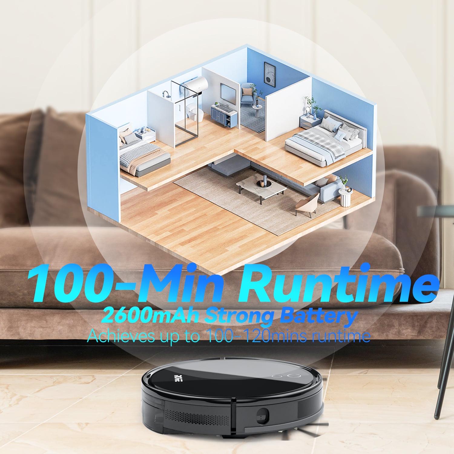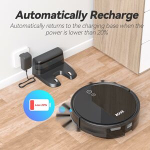 – LONG LIFE BATTERY & AUTOMATICALLY RECHARGE: Robot Vacuum with 2600mAh strong battery capacity, it achieves up to 100-120mins runtime to meet the cleaning needs from the living room to the bedroom, or public places cleaning. With self-charging technology, the vaccum cleaners will automatically returns to the charging station when the power is lower than 20%, and then auto continuing the unfinished cleaning task after being fully recharged.