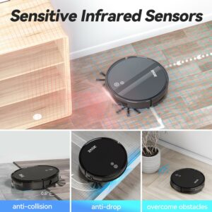 – SAFE & THOROUGH CLEANING:Upgraded built-in sensitive drop-sensing and anti-collision infrared sensors help to effectively identify furniture,obstacles and stairs, calculate distance and angles to avoid obstacles and automatically plan the route. A super slim 3.15 inch wireless robot vacuum with reach to hidden deeply mess under the bed, sofa, and other hard-to-reach areas to thoroughly clean floors for you..