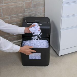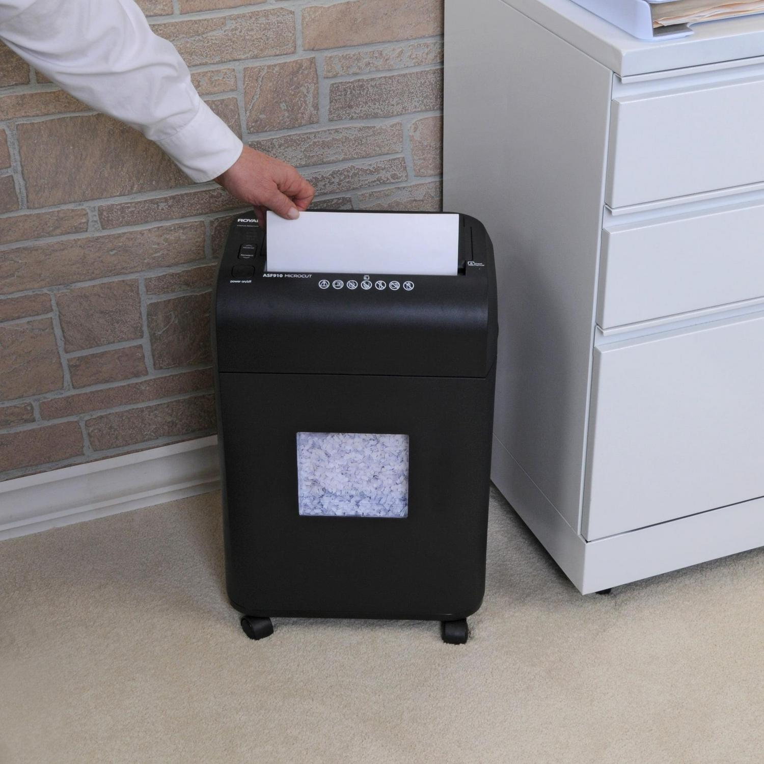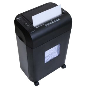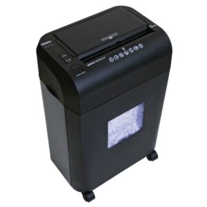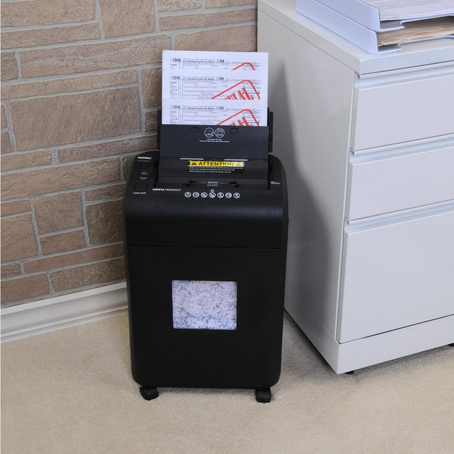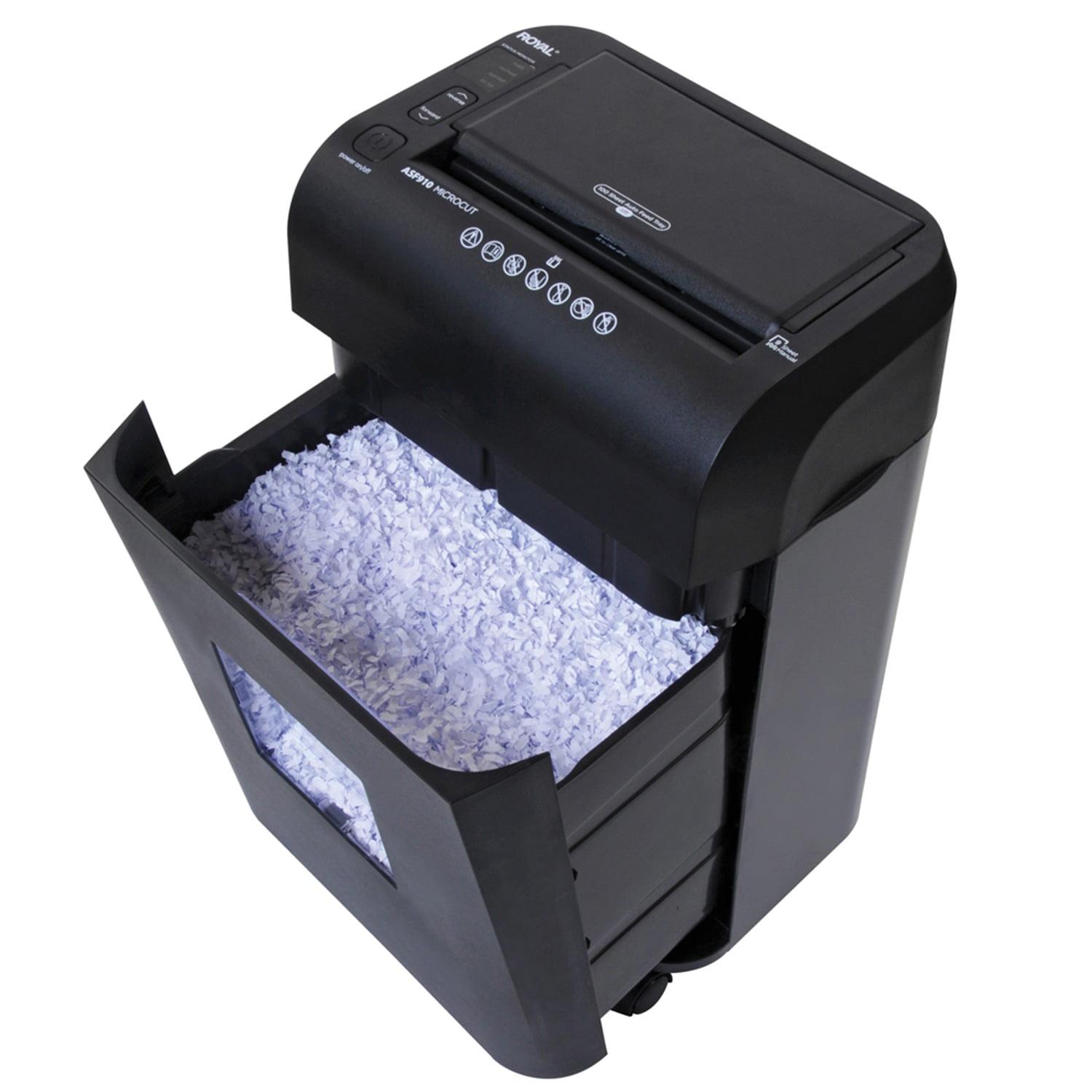 The Royal ASF910 Micro cut Auto feed Shredder does the work for you by shredding each page until the auto-feeder is empty. This shredder includes manual slots that accept up to 9 sheets of bond paper at a pass and expired credit cards as well. The large 4.5 gallon pull-out waste bin holds hundreds of shredded pages, and the shredder boasts casters for easy mobility. The SF910 features micro cut technology, reducing paper to tiny chips ensuring destruction of the most sensitive of documents.