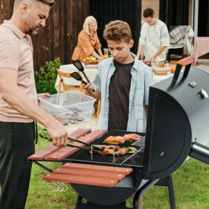 Throw away all the worries and fire up Royal Gourmet CC1830V Barrel Charcoal Grill. Having a BBQ party is always fun, no matter in the backyard, by the pool, on the deck or on the patio, anyplace is the right place for a charcoal smoker. The falling-out bone ribs and refreshing veggies of sheer deliciousness whet your appetites at most, it is impossible to ignore the irresistible smoky dishes fired to perfection over the wood-fire cooking grates. Just sit down and enjoy the recreational time with families and friends.