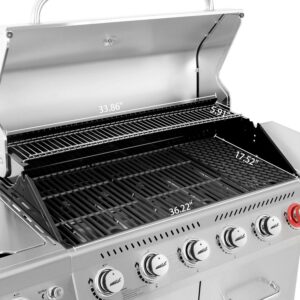 Searing steaks or cooking vegetables, melting cheese or smoking salmon, what sort of BBQ tools help you to get perfect flavors The resounding answer to that question is our Royal Gourmet GA6402S 6-Burner Stainless Steel BBQ Gas Grill. Whether you are going to hold a large party to entertain friends or just have a free time barbecue at will with families, it will shine when you are grilling. Not merely multi-functional, it has a modern design with a silver stainless steel appearance entirely. Make Royal Gourmet be your intimate cooperator, you will achieve outstanding grill performance as you like. And this product can be adapted to our GRILL COVER-CR7605.