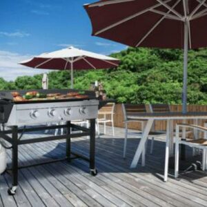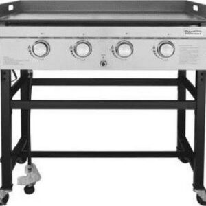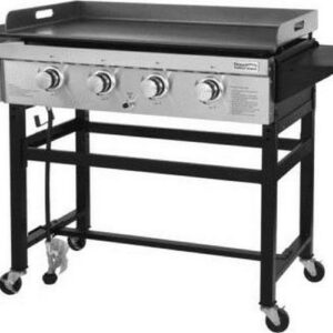 Unlock all the possibilities you may expect from Royal Gourmet GB4001 4-Burner Propane Gas Griddle. It has a thick, flat griddle plate, a total of 792 sq. on the surface that is perfect for outdoor BBQ parties. Four powerful stainless steel tube burners put out overall 52000 BTUs, allowing you to cook various foods at the desired heat. Fixed side tables hold on to multiple seasonings with a stable construction. The cleaning job is simple and easy, after grilling, you can remove the griddle with a grasp of its side handles. Detach oil cup that collects grease from dripping for fast and easy cleanup. Royal Gourmet GB4001 comes with an open cart design, which is simple but sturdy. It is also free to move with four locking casters. Cook eggs, pancakes, steak, rice, teriyaki style foods, and more with Royal Gourmet GB4001 4-Burner Propane Gas Griddle.