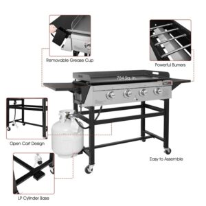 Royal Gourmet GB4001 4 Burner Flat Top Gas Griddle, 52,000 BTU for Outdoor Cooking