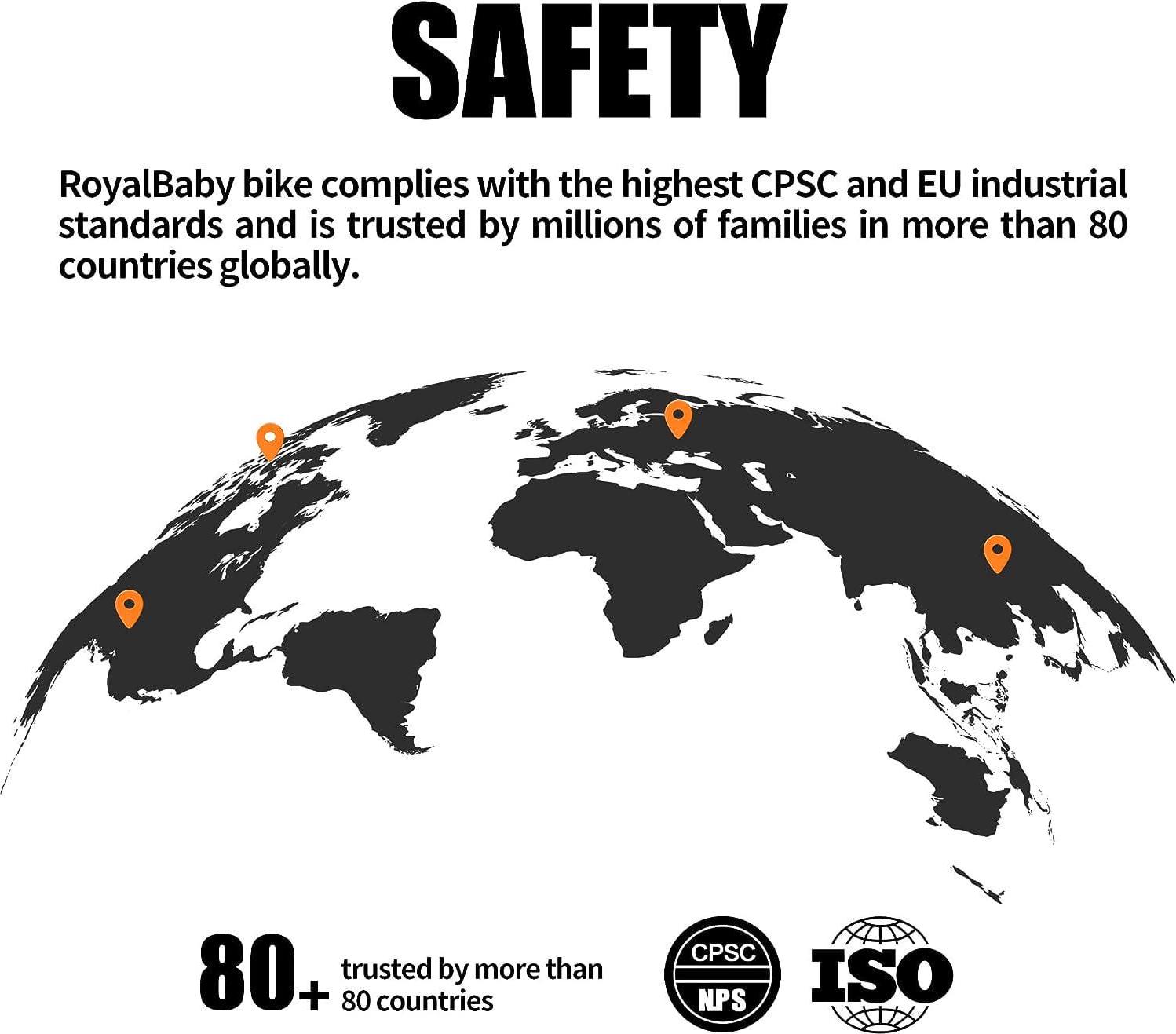 RoyalBaby bikes comply with the CPSC standards and are trusted by millions of families in more than 80 countries globally.