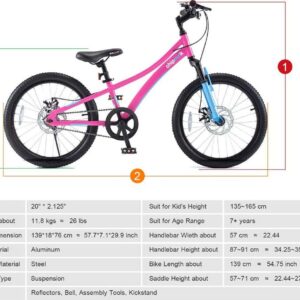 Royalbaby Boys Girls Kids Bike Explorer 20 Inch Bicycle Front Suspension Aluminum Child’s Cycle with Disc Brakes Pink