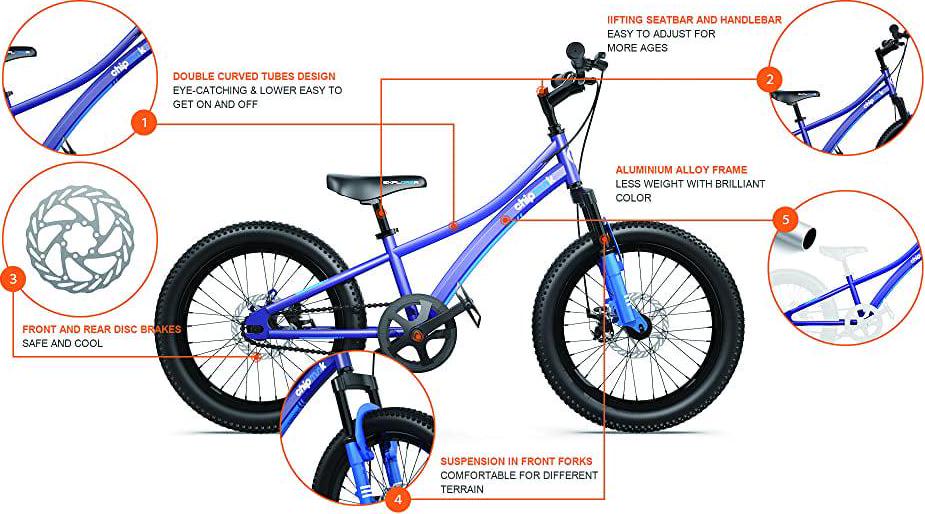 2.BIKE DESIGN: Aluminium alloy frame,eye-catching double curved tubes design,suspension front forks for different terrain,front & rear disc brakes. High quality accessories make RoyalBaby bikes stronger and more durable.