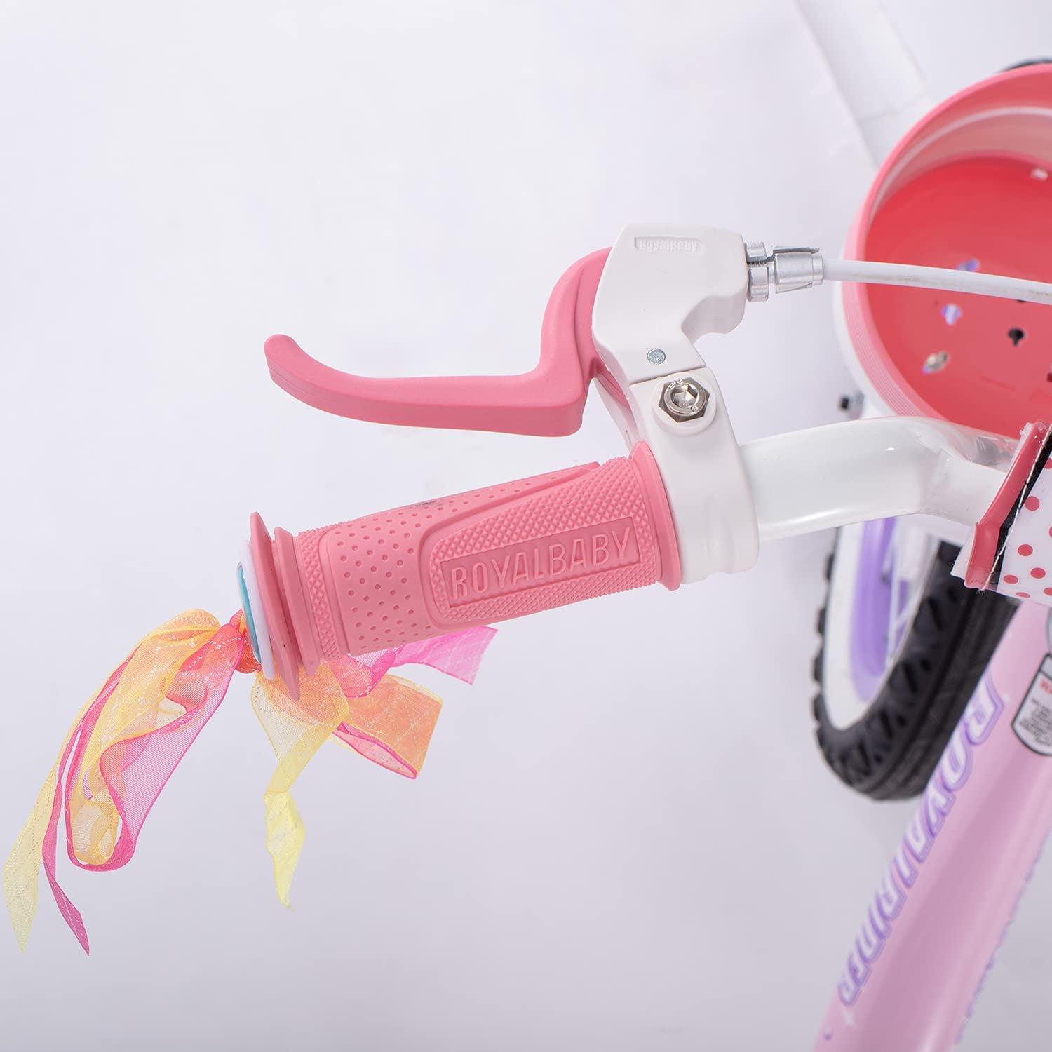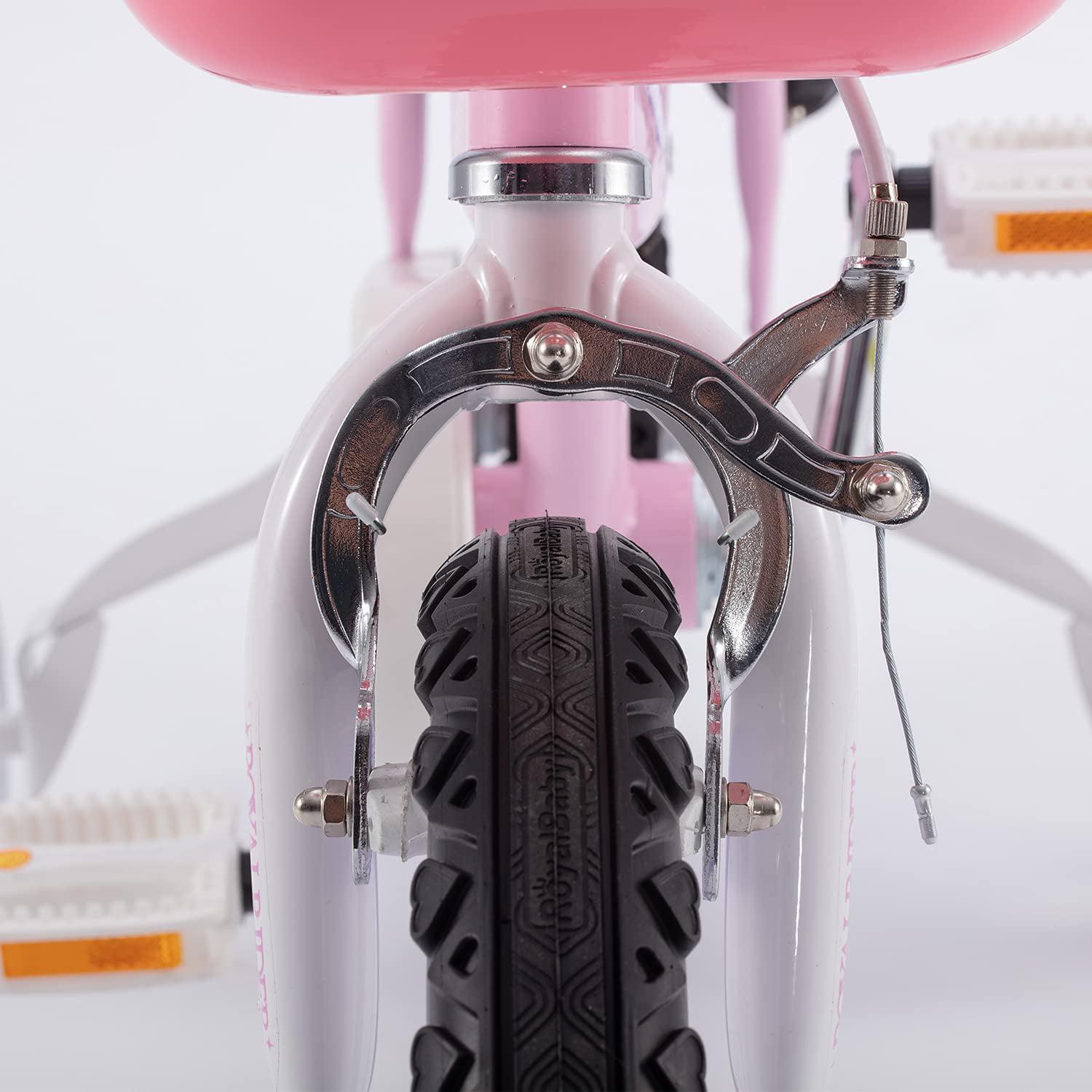 Let your little ones enjoy the outdoors and kindle their love for cycling with the RoyalBaby Jenny Princess 14-Inch Kids Bike. With a charming and cute design, this bike is a masterpiece that will capture your child’s adventurous heart. Alongside a robust steel frame and non-slip pedals, this bike guarantees a secured journey for your little one on every adventure, bringing them back sound and intact. This bike with training wheels features 14-inch tires for a confident and enjoyable cycling experience. This toddler bike features an enclosed chainguard, and a crank mechanism enhancing safety by eliminating any contact with the chain while riding. The dependable dual brakes provide confident braking performance in various weather conditions for worry-free adventures outdoors. Meanwhile, the extra-wide tires deliver increased stability and traction, allowing young riders to confidently navigate different terrains while providing a smooth and comfortable ride for endless outdoor fun. Watch your child soar to new heights, pedaling through your neighborhood with the RoyalBaby Jenny Princess 14-Inch Kids Bike.