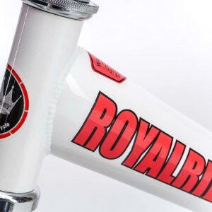 The RoyalBaby 16″ Jenny features a one-tube and elegant curved down design. With a low standover height, thanks to the curved down one-tube design, getting on and off the bike is enjoyable. This ergonomic design ensures more effortless and comfy riding, which benefits beginners and pros.