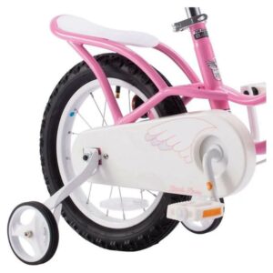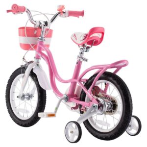 Let your little princess blast off into a world of fun, excitement, and imagination with the RoyalBaby Little Swan 14-Inch Kids Bicycle. Inspired by Swan Lake, this pre-assembled bicycle features a classic ballet design with graceful curves, a delightful pink color, and an elegant shape that will make your child feel like a true bike ballerina. With its ergonomic and adjustable quick-release seat and handlebar, this toddler bike grows with your child, ensuring a comfortable fit every time. The sealed bearings provide a friction-free adventure, while the dual brakes (front caliper and rear coaster), along with a patented brake lever designed specifically for smaller hands, give full control. A bell and reflectors are included for maximum safety and visibility, while the extra-wide tires and pedals help maintain balance while riders learn to ride. No more messy chains or tangled trousers as the full-chain guard keeps everything clean and hassle-free. And with the convenient training wheels, adventures are even more enjoyable. The warp-proof front folding basket stores toys and other accessories, allowing your child to bring their favorite treasures along for the ride. Get ready to embark on a whimsical journey with the RoyalBaby Little Swan 14-Inch Kids Bicycle.