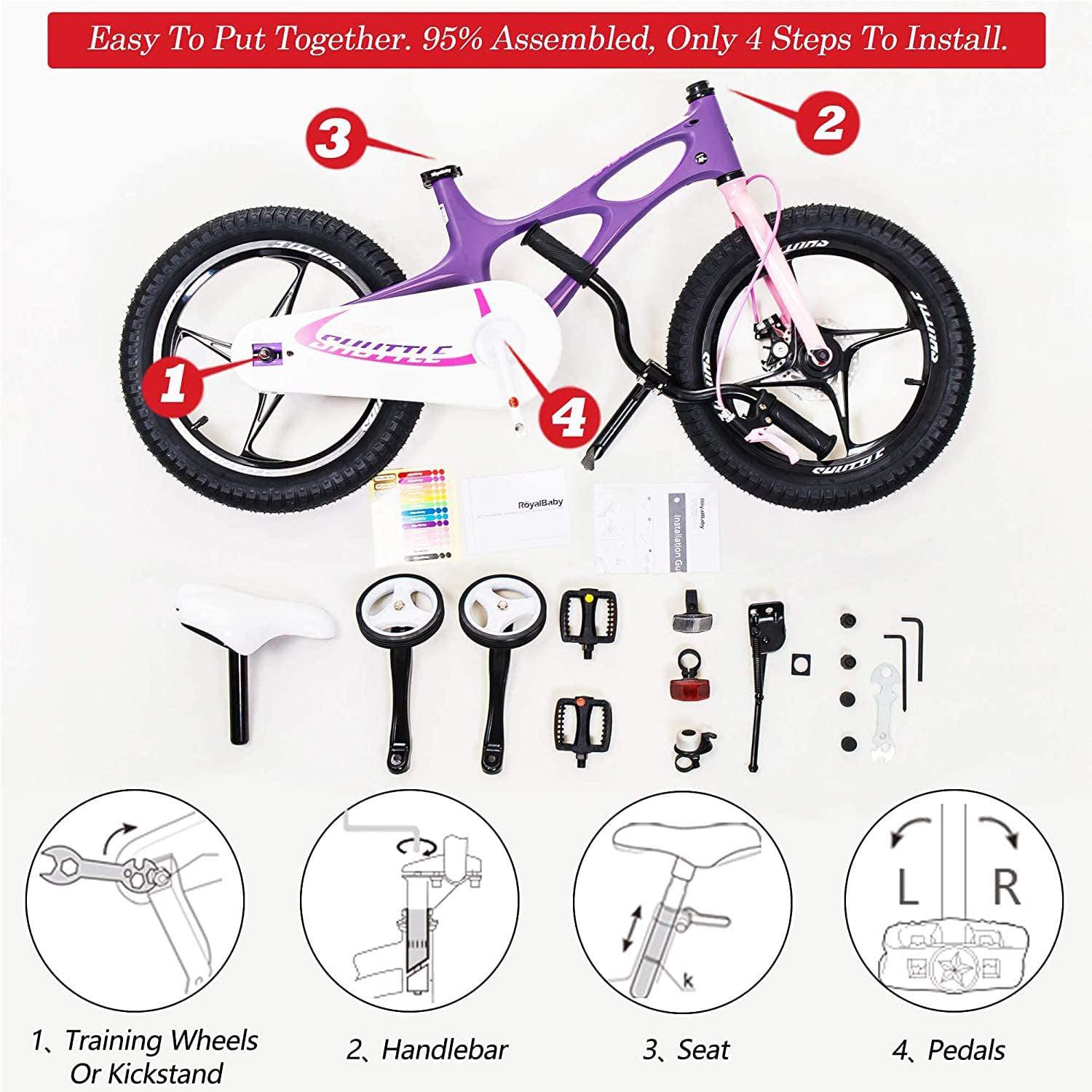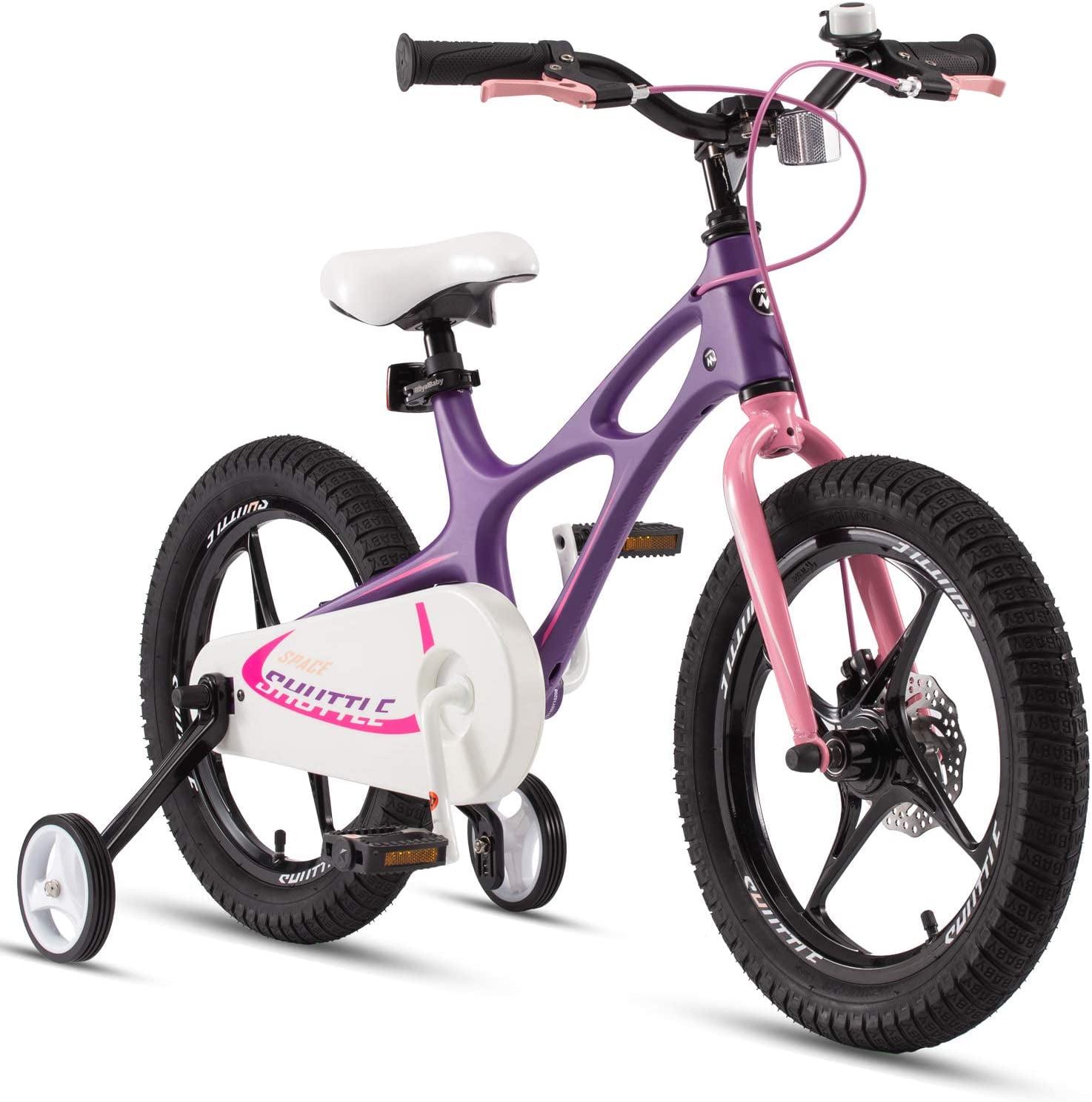 RoyalBaby Kids Bike Boys Girls Space Shuttle Purple 14 Inch Magnesium 2 Hand Disc Brakes Training Wheels