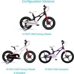 RoyalBaby Space Shuttle Lightweight Magnesium Kid’s Bike with Disc Brakes for Boys and Girls, 14 inch with Training Wheels, Lilac